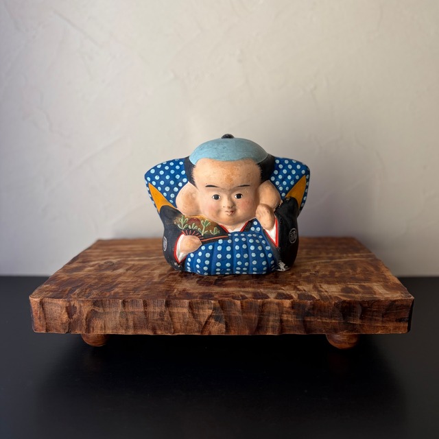 ■送料について■ ◎こちらの商品はヤマト宅急便60サイズにてお届けいたします。購入時に宅急便60サイズをお選びください。 ◎複数の商品をご購入の場合、送料が合算されることはありません。お選びいただいた送料のうち、最も高い送料が1つのみ適用されます。ぜひお得なまとめ買いをご検討ください。 【福助人形 土人形 招き福助さん】 左手を上げた福助人形。 よく目にする膝の前に両手をついた福助さんと違い こちらは右手に扇子を持ち、 左手はお顔の横まで持ち上げています。 大変珍しいポーズの福助土人形です。 丁寧に絵具で絵付けされた土人形は 独特な風合いが魅力です。 釉薬をかけて焼成されたものとは違い、 艶が無く、汚れやすく 水洗いすることができません。 経年変化を愉しんでいただきたいと思います。 昔ながらの雰囲気を持ち 古家具、古道具との相性が良いです。 良い佇まいの福助さんをぜひ、お手元へ。 ■商品番号■ 251202Z ■サイズ■ 高さ 14cmほど 幅 13cmほど(底部分) 17cmほど(肩の辺り) 奥行き 8.5cmほど(底部分) 10cmほど(腰の辺り) ■商品詳細■ ・焼成後に絵付けがされていますので、濡れた手などで触ると色が落ちてしまいます。特に裃の青い色は乾いた手で触れても色移りします。手についた絵具は通常の手洗いで簡単に落とすことができます。 ・色移りなど生じますが、その経年変化を愉しんでいただきたいと思います。 ・釉薬をかけて焼成されたものと比べて強度がありませんので、硬いものに当たりますと欠けやすいです。お気を付けください。 ・長期間保管されていたお品です。画像をよくご確認いただき、ご検討くださいませ。 ・旧家より初出のお品です。 ■ご留意ください■ ※商品の仕様やサイズは、若干異なる場合がございます。 ※ご覧のモニターによっては実物と若干色味が違って見える場合がございます。 ※その他の注意事項等は【ABOUT】に記載しております。ご購入前にお読みくださいませ。 ■お問い合わせ■ 商品の詳細や発送についてはオンラインショップ内のチャットやメール、お電話、インスタグラムDMなどでお気軽にお問い合わせくださいませ。 ✉ [email protected] ☎ 0573-25-4925 Instagram @hurudogu_kuon