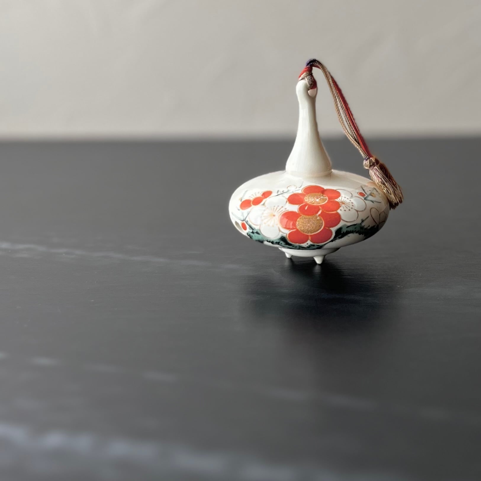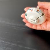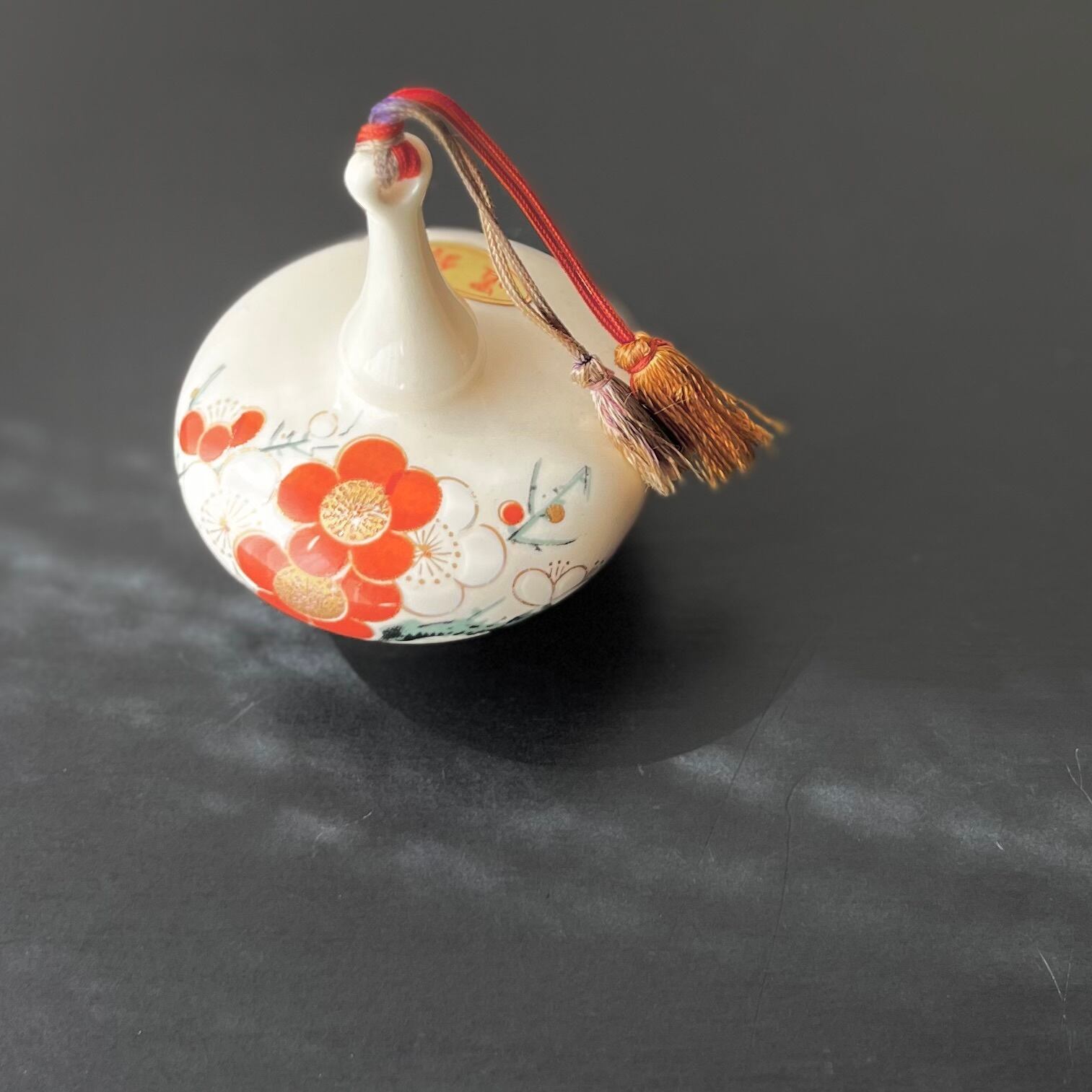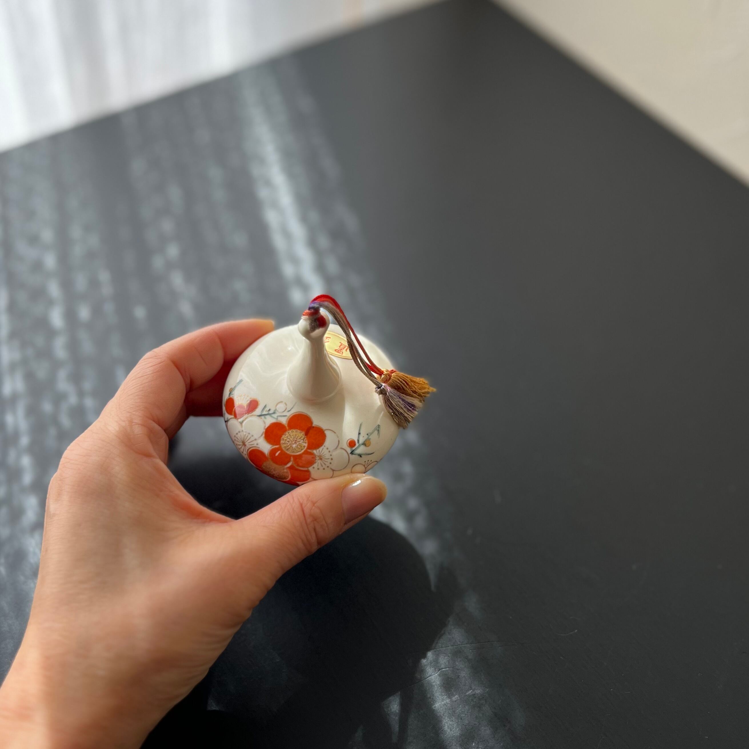 梅の花が可愛らしく描かれた陶器製の置鈴。