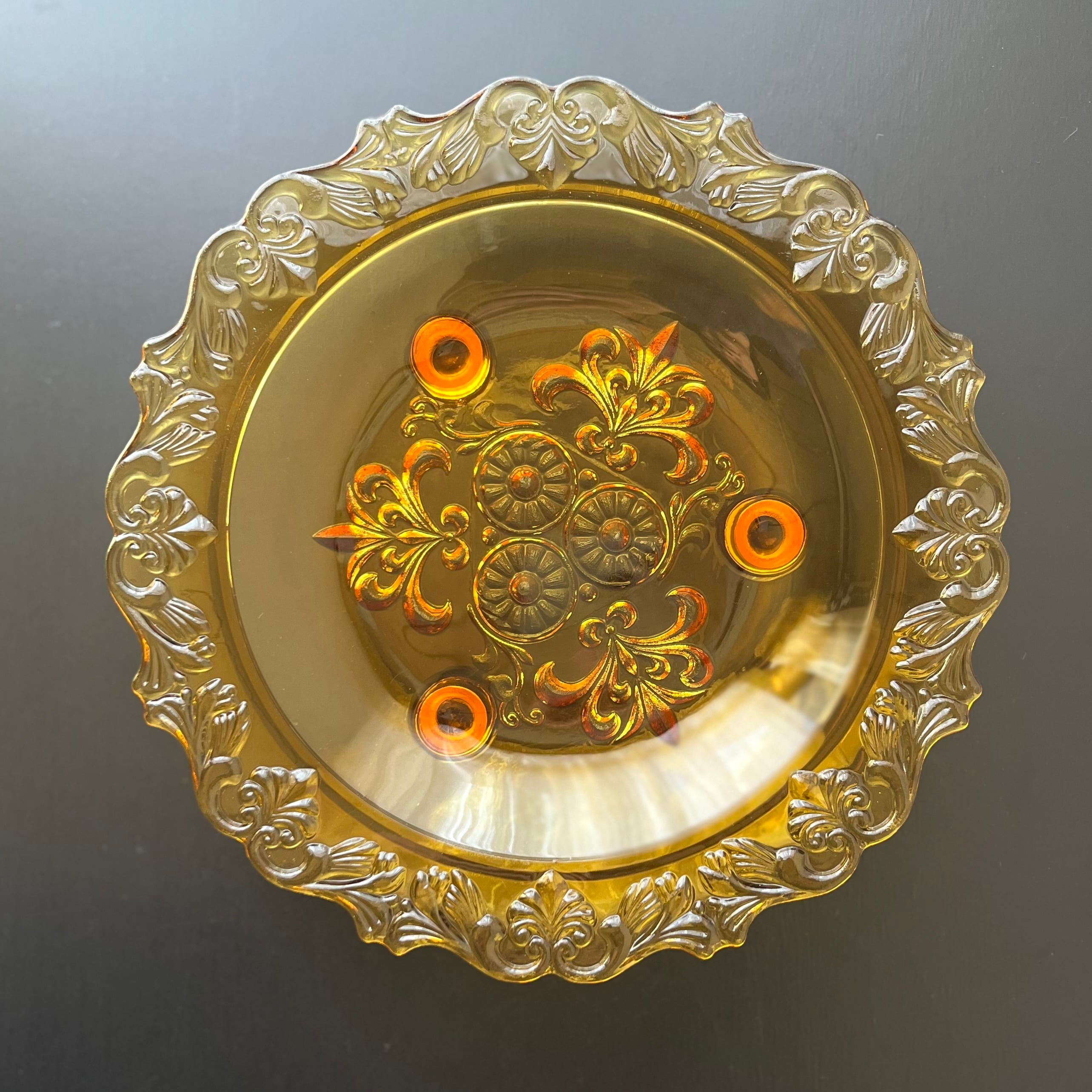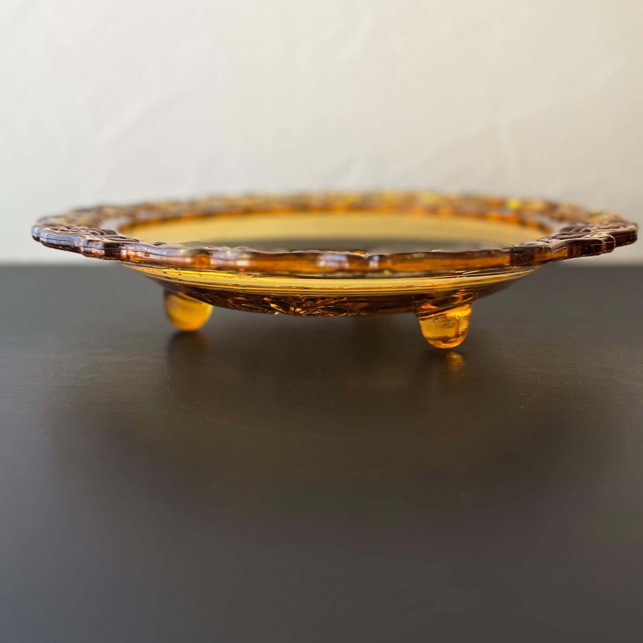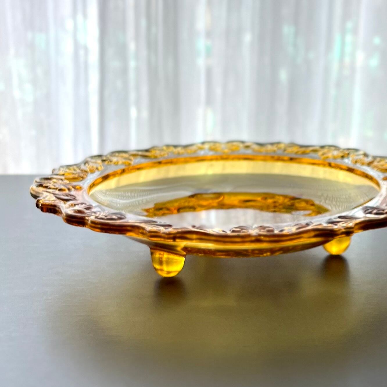 【飴色ガラスの脚付皿 東洋ガラス アンバー 琥珀色】