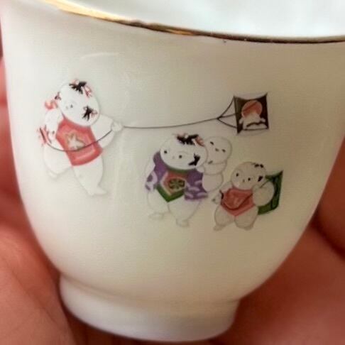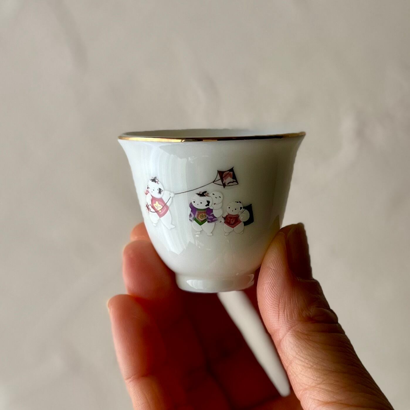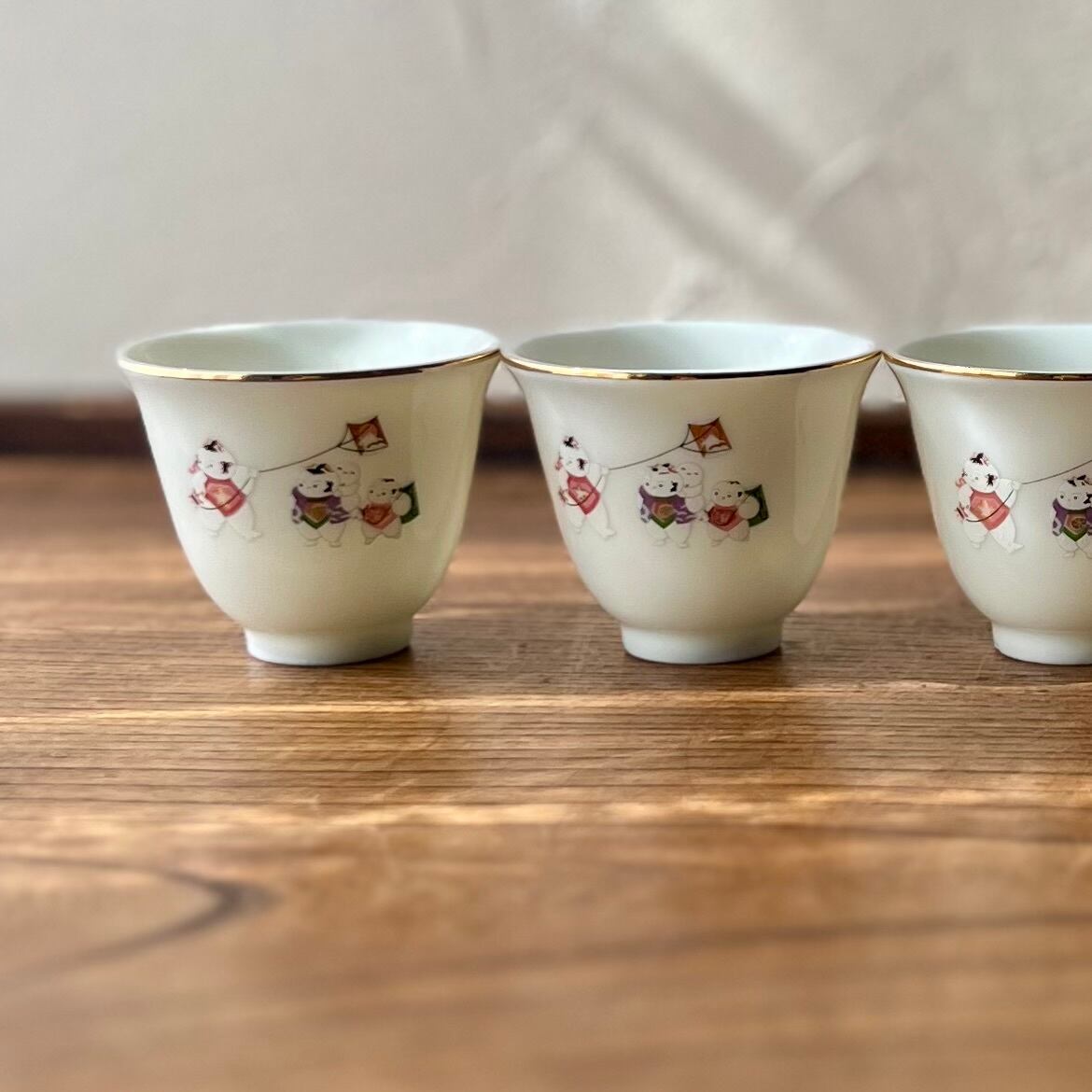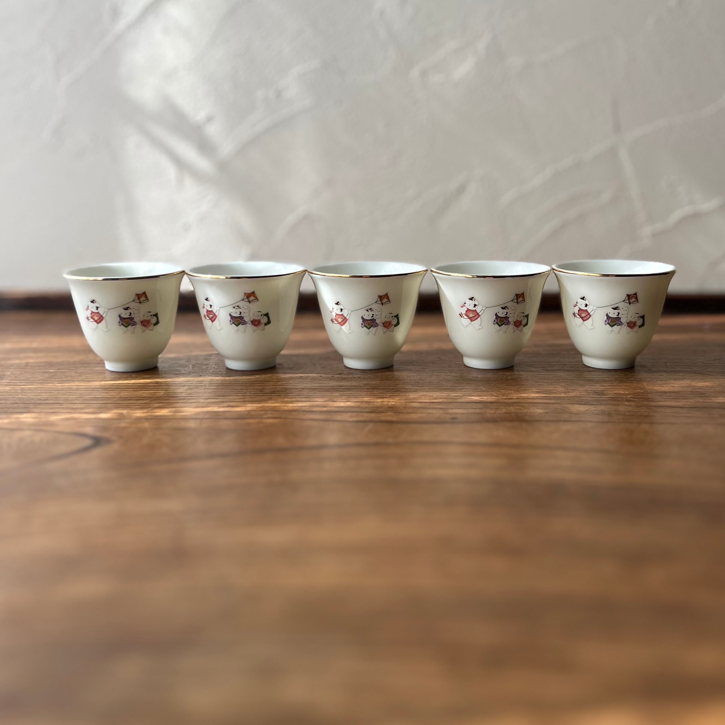 九谷焼 盃 猪口 5個組 凧上げをする唐子 金彩