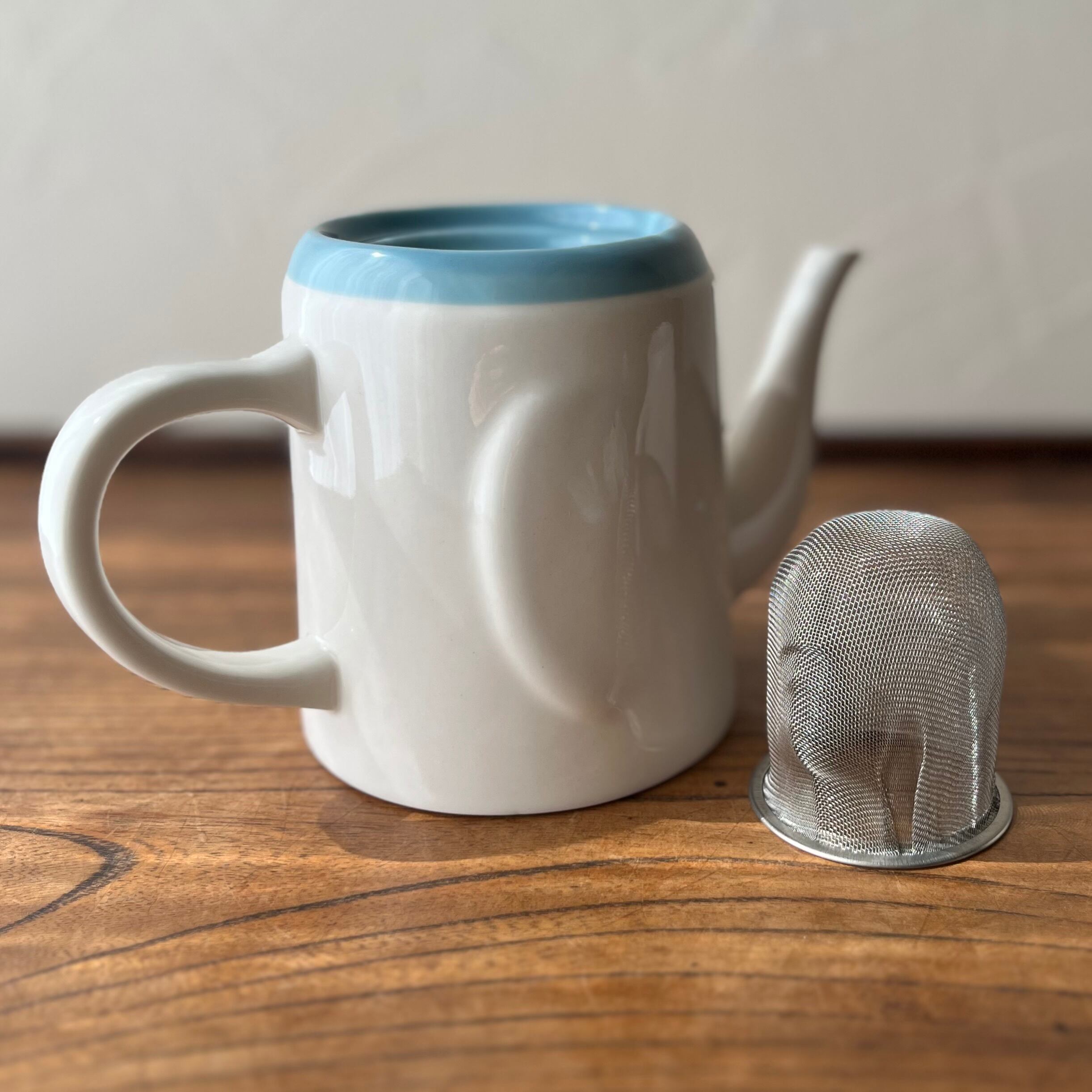 ・ポットの口縁に取り付けるタイプの茶漉しがついています。
