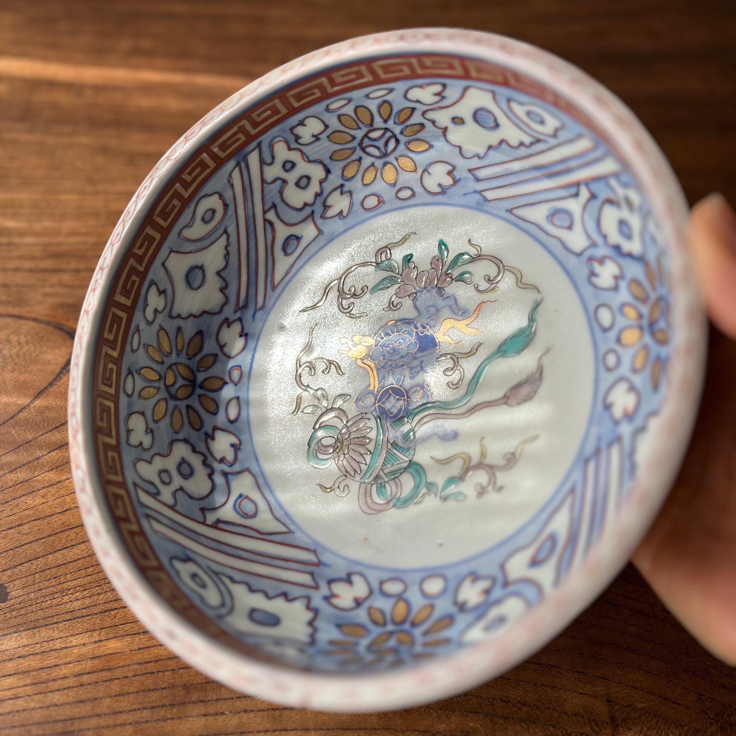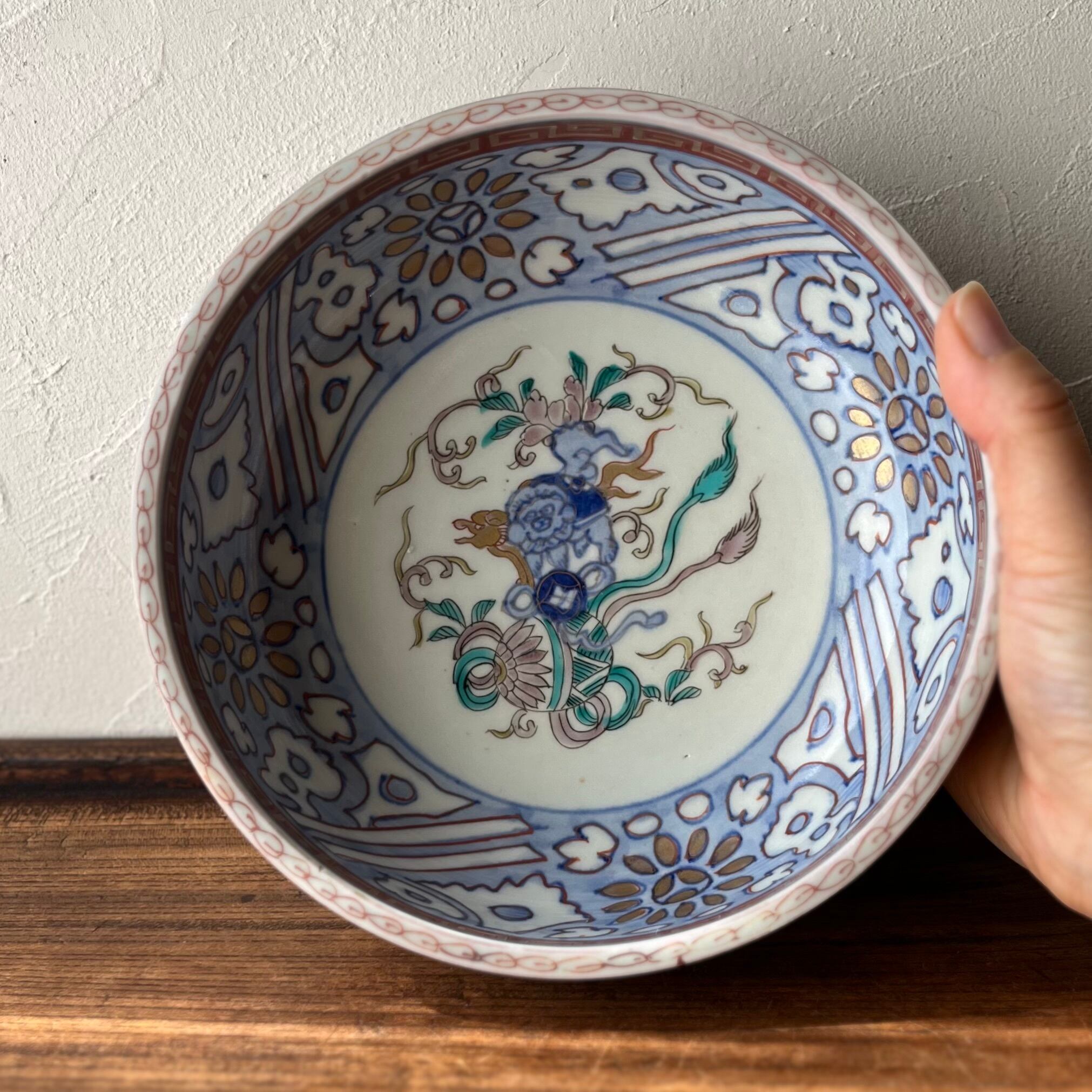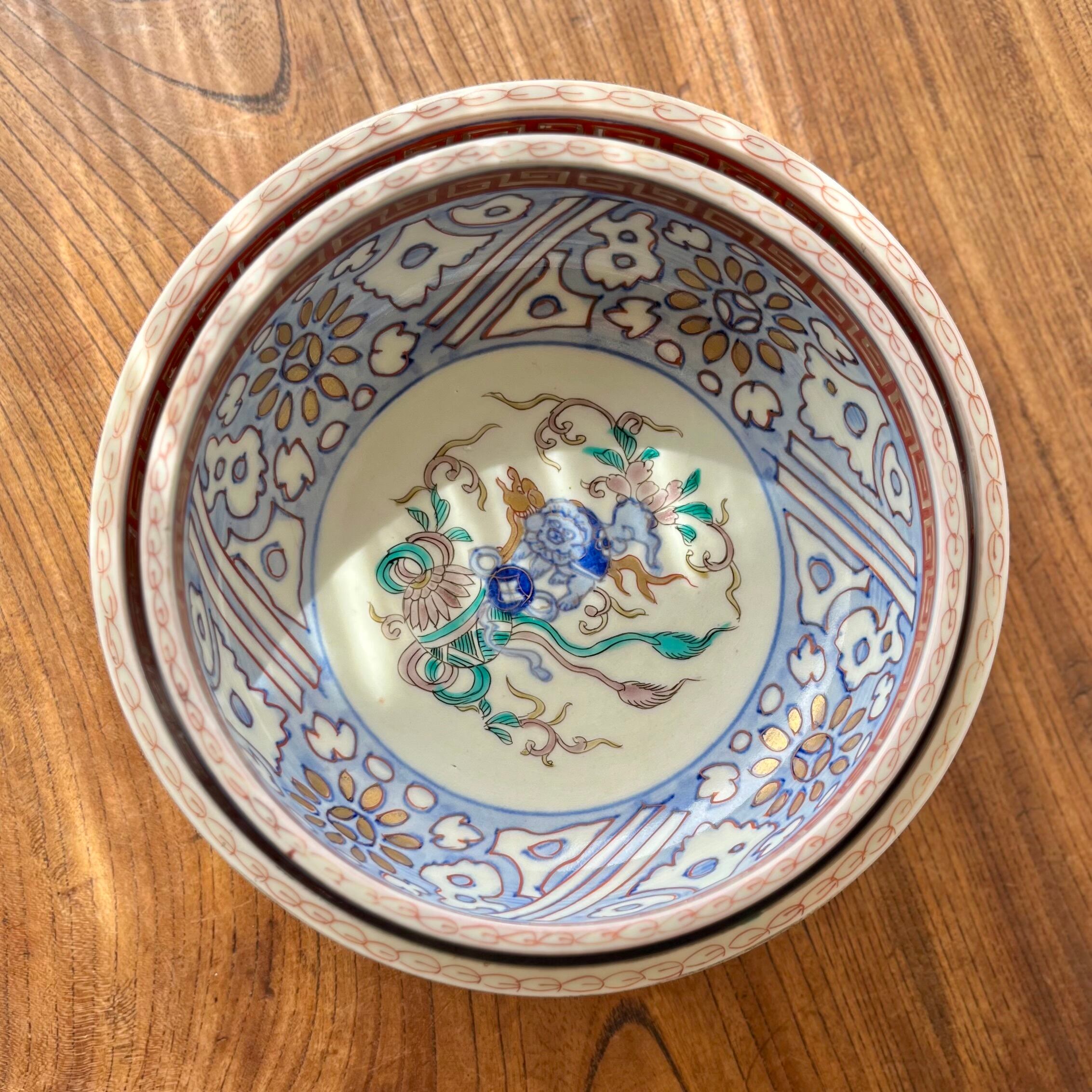 【唐獅子に鞠 色絵金彩6寸鉢 三つ組鉢小 二重高台】