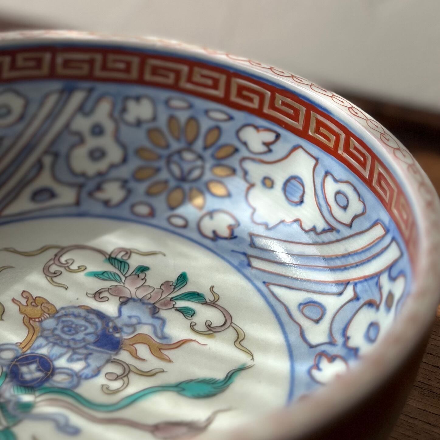 唐獅子に鞠 色絵金彩6寸鉢 三つ組鉢小 二重高台