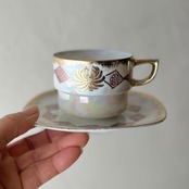 【ラスター彩◆コーヒーカップ ビンテージ 金彩 ピンク色のガーランド】