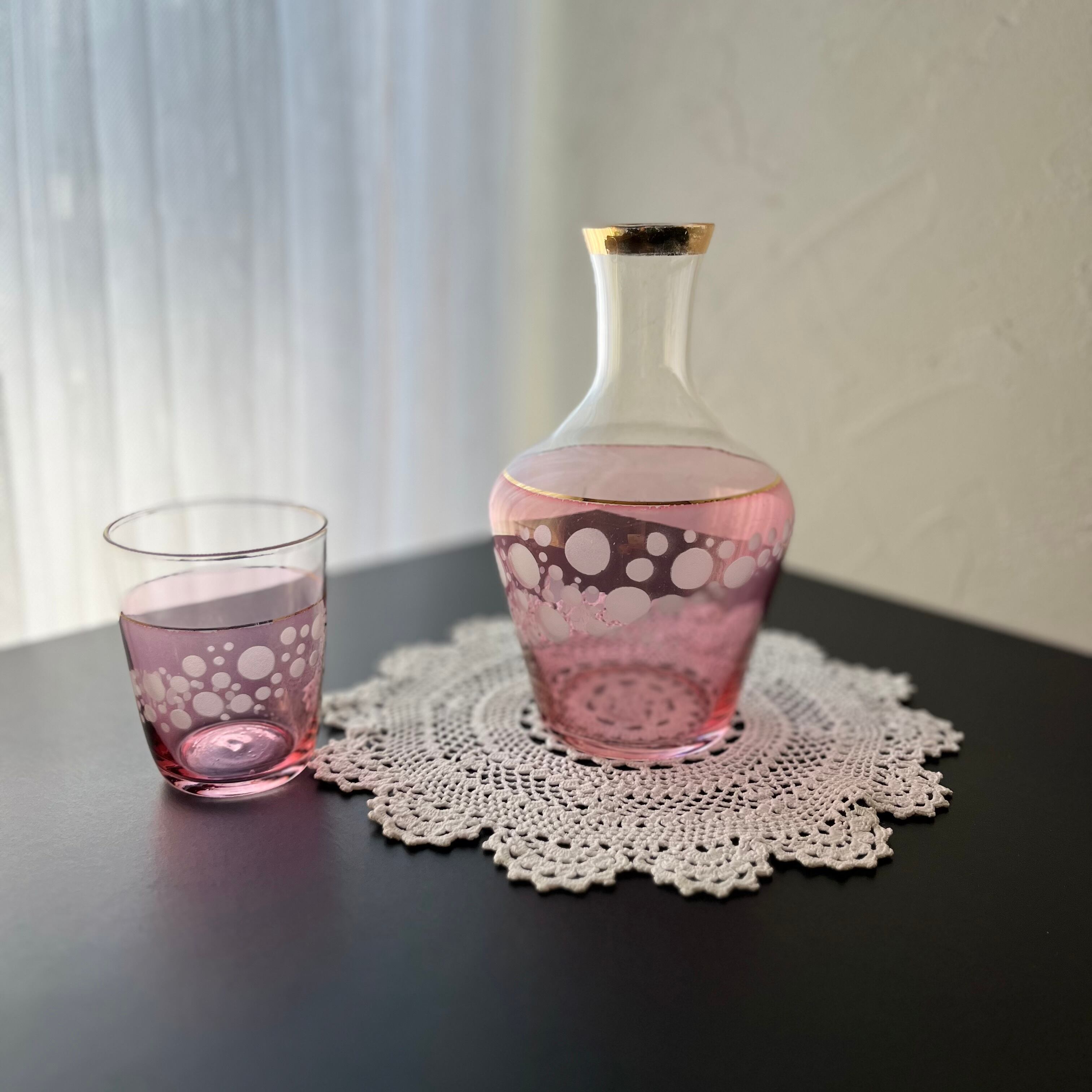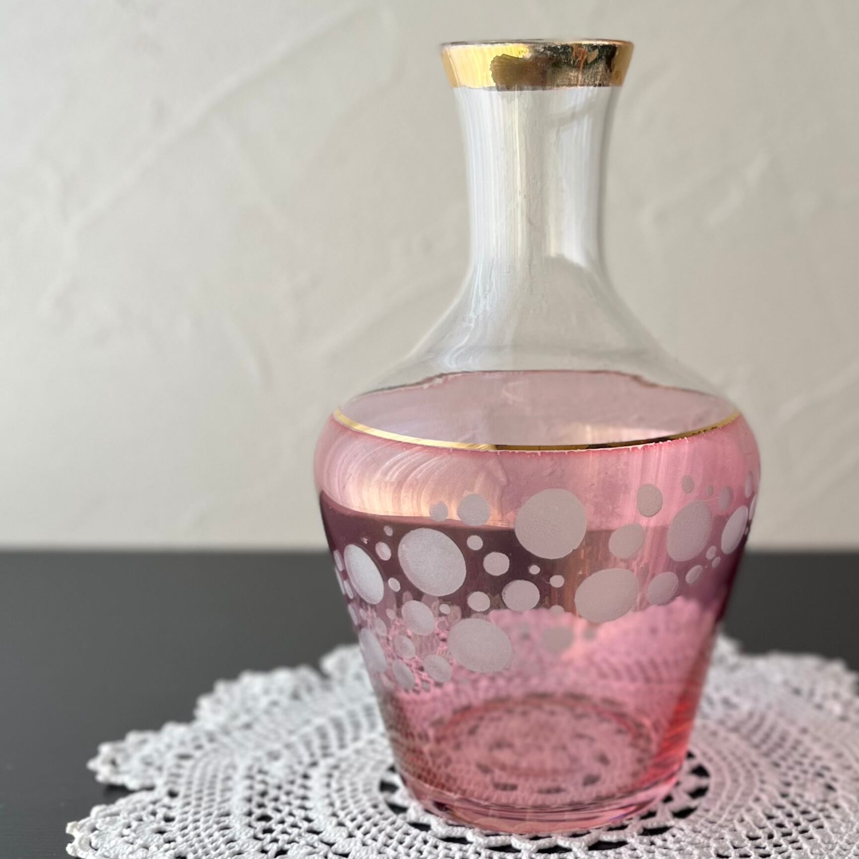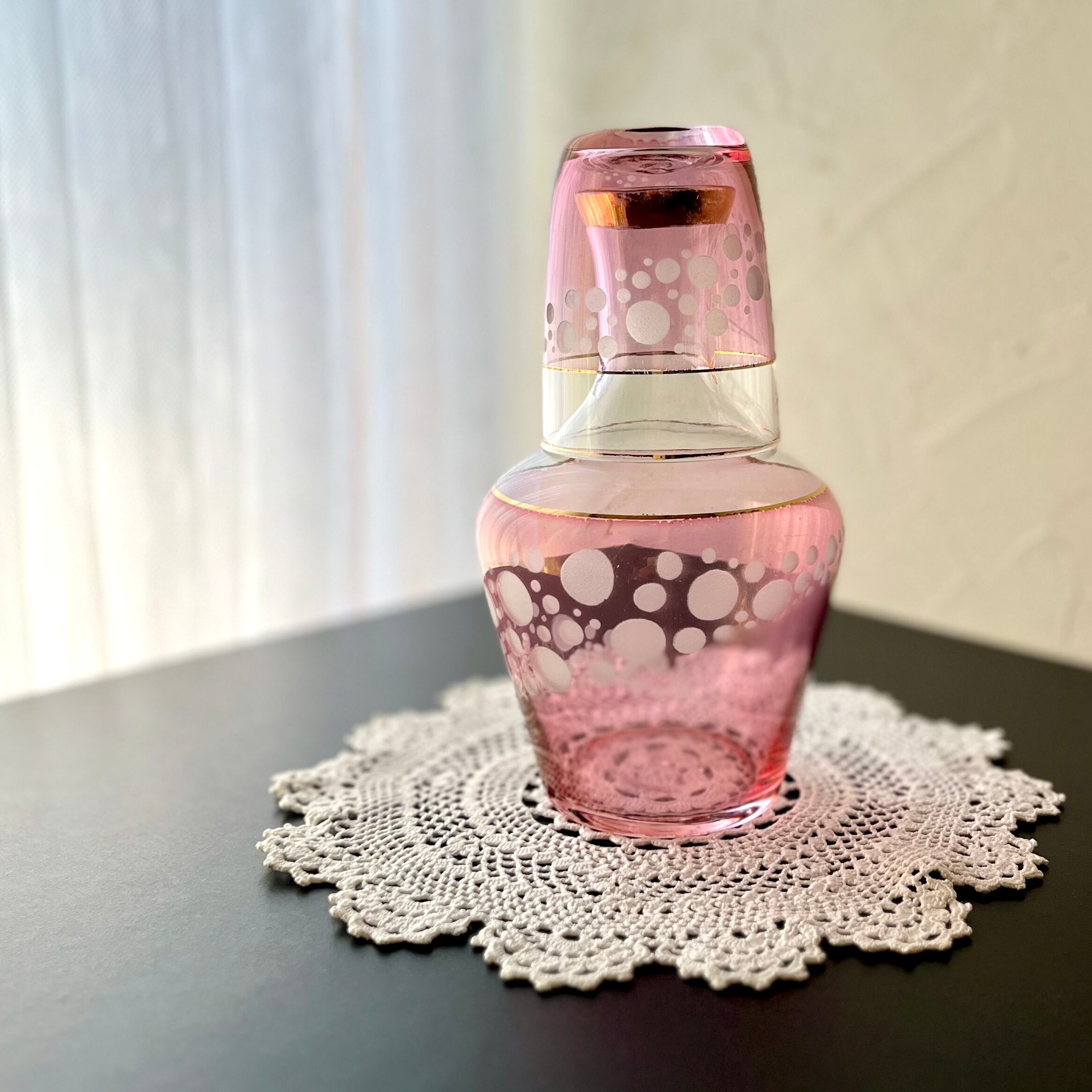 冠水瓶 水差し ピンク色に浮かぶ水玉 レトロ