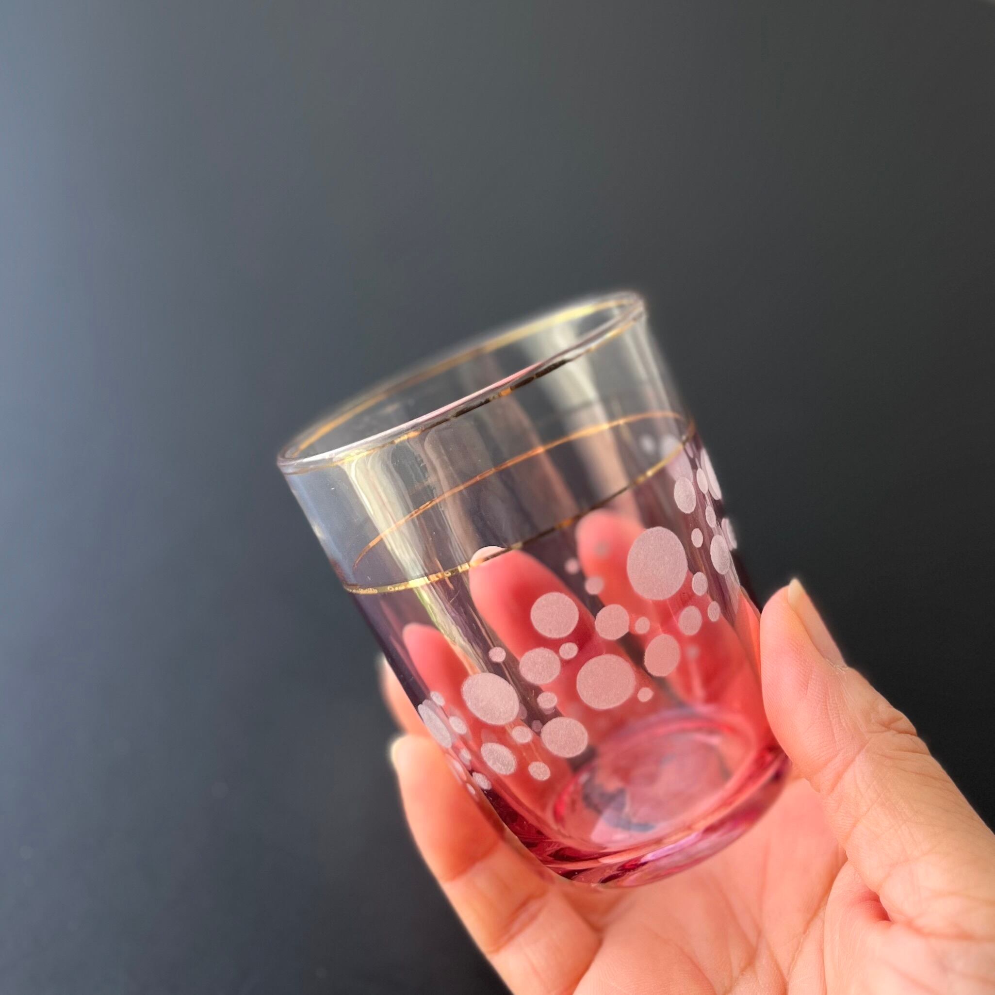 【冠水瓶 水差し ピンク色に浮かぶ水玉 レトロ】