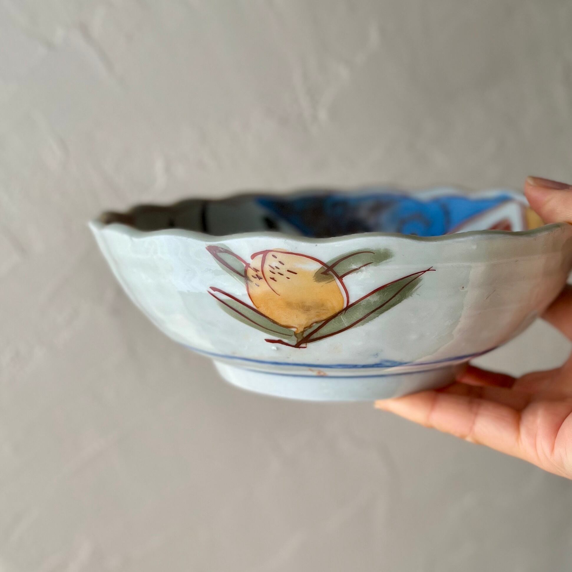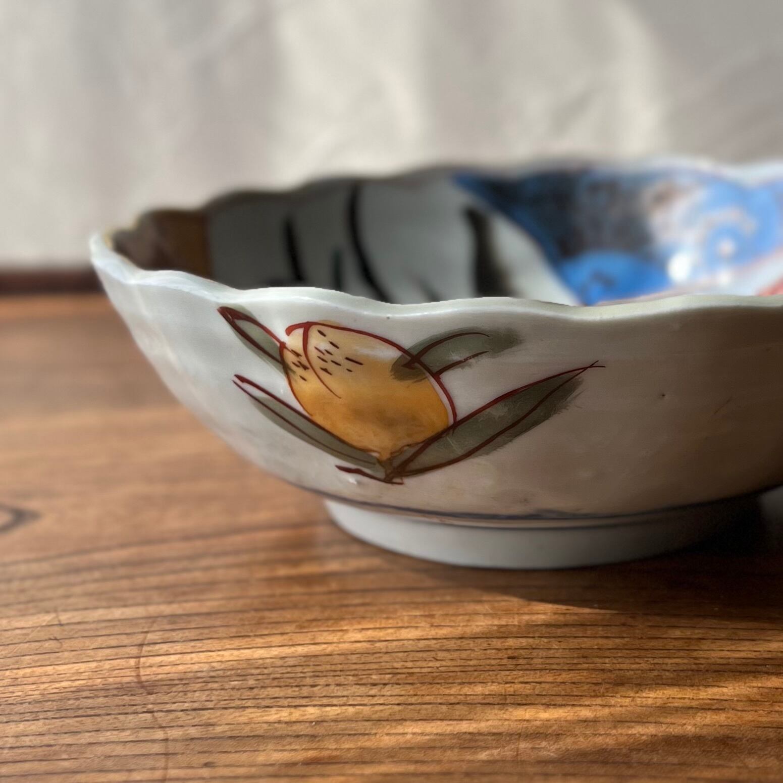 季節の花が鮮やかに描かれた6.5寸鉢。