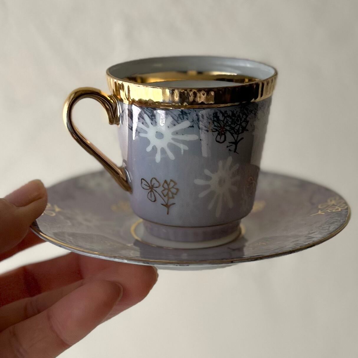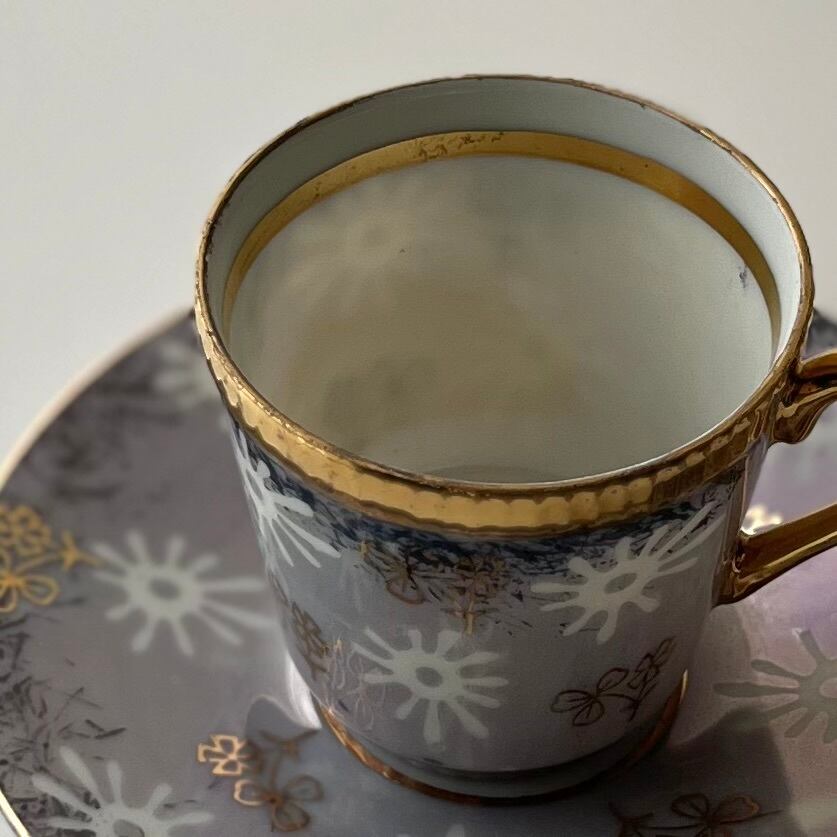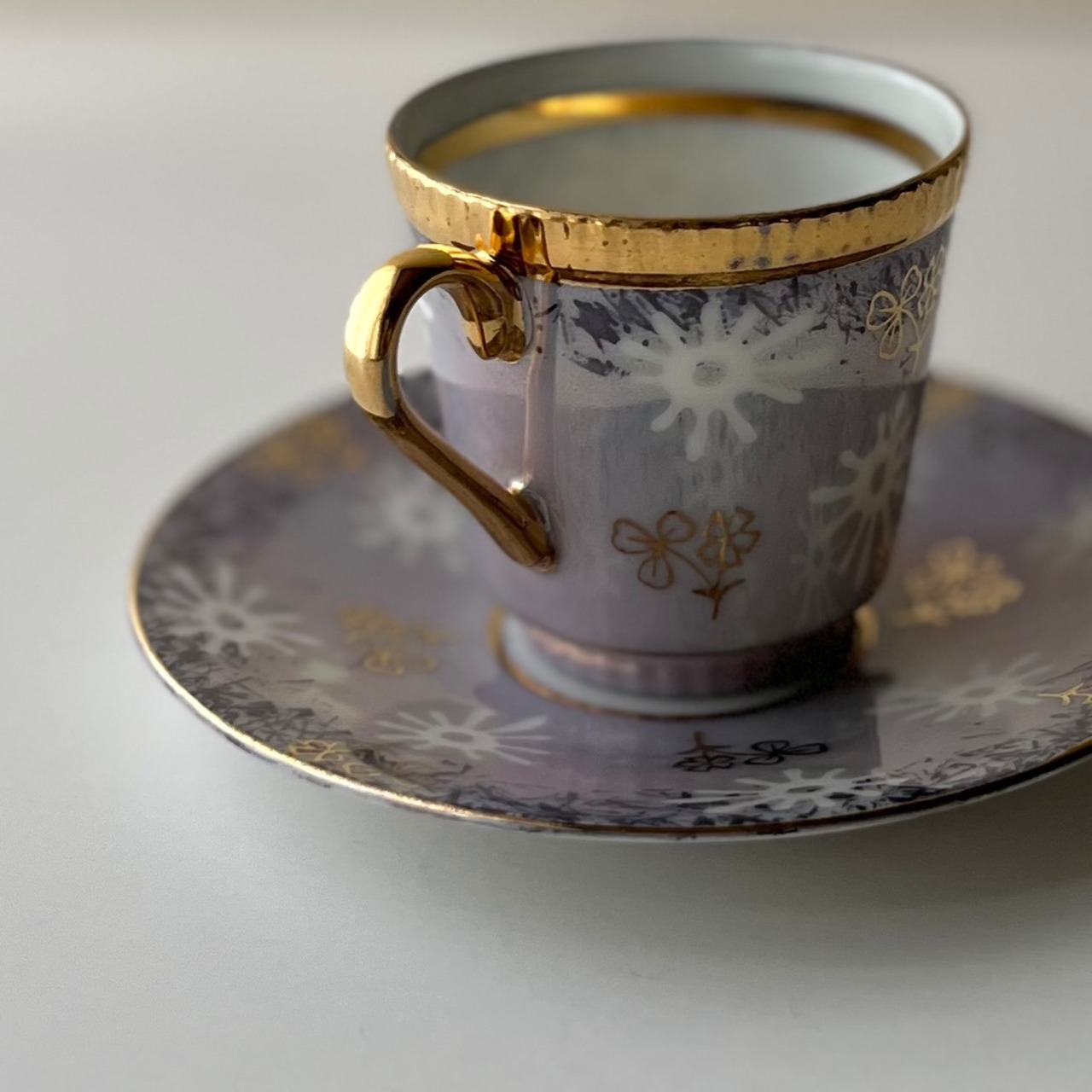 ラスター彩◆デミタスカップ ビンテージ 金彩 パープル 波紋
