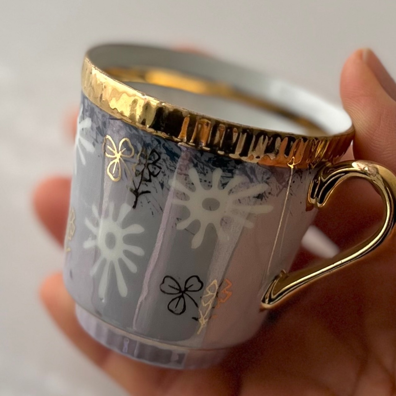 ・カップ持ち手と口縁付近の金彩にはそれなりに擦れが見られます。