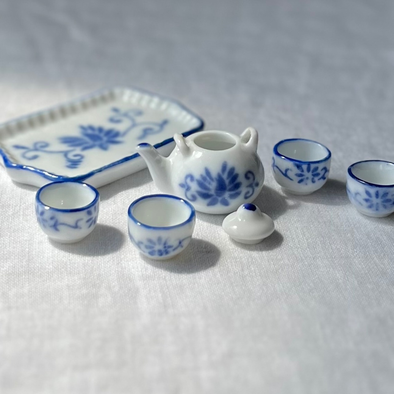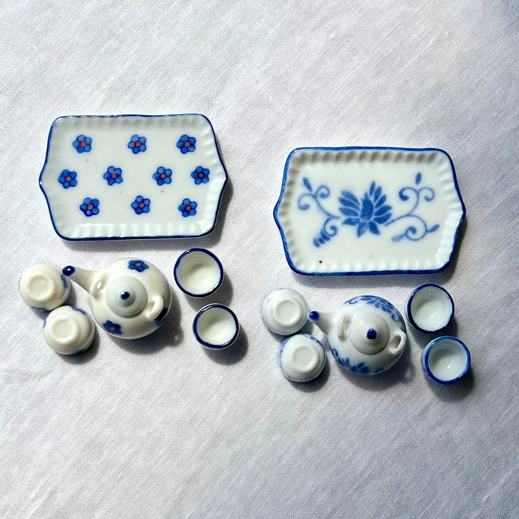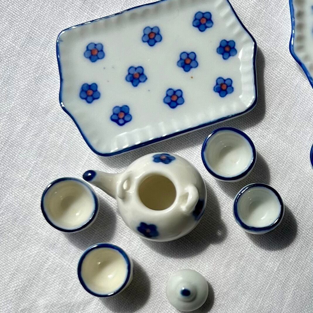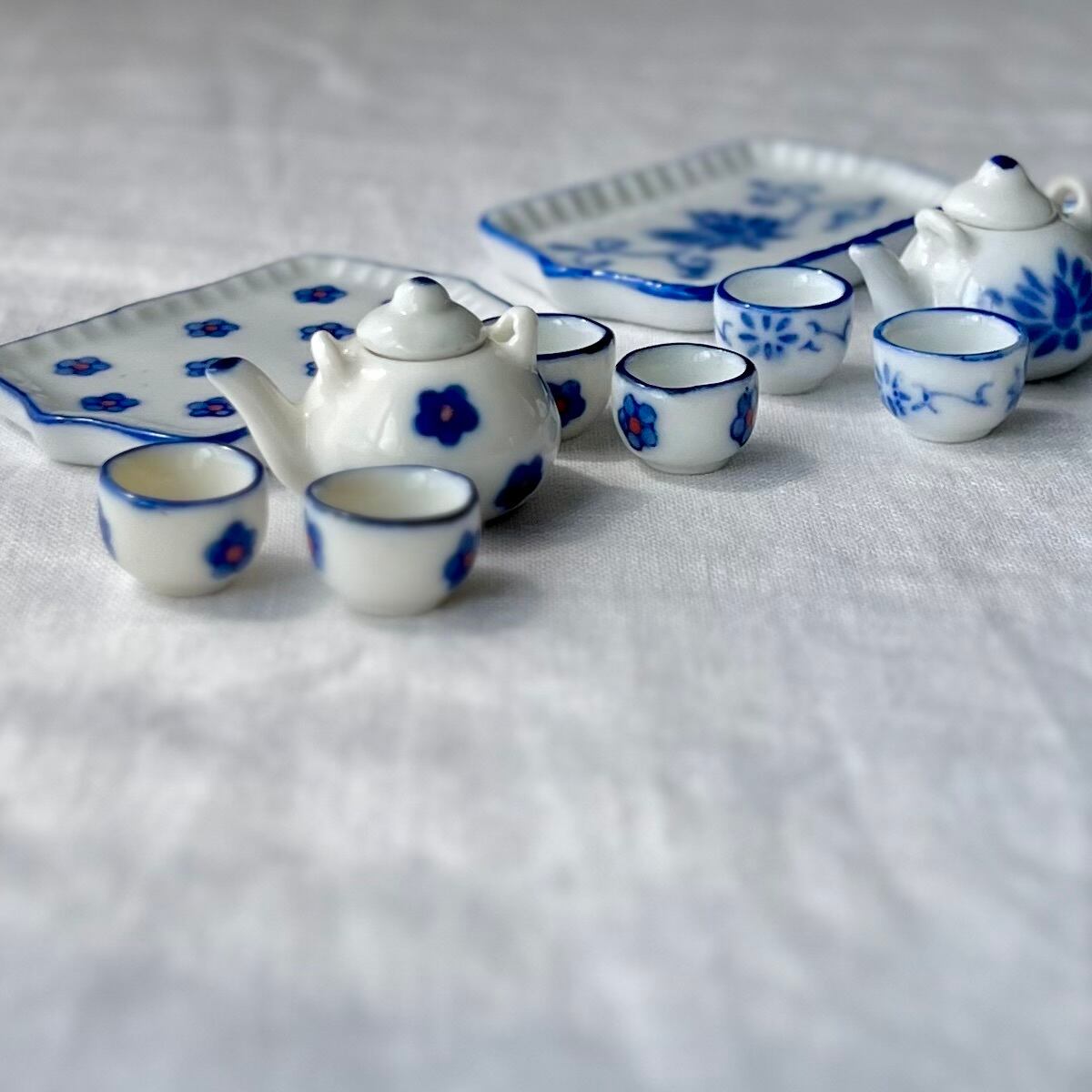【ミニチュア陶器◆茶器セット フラワーモチーフ2種セット】