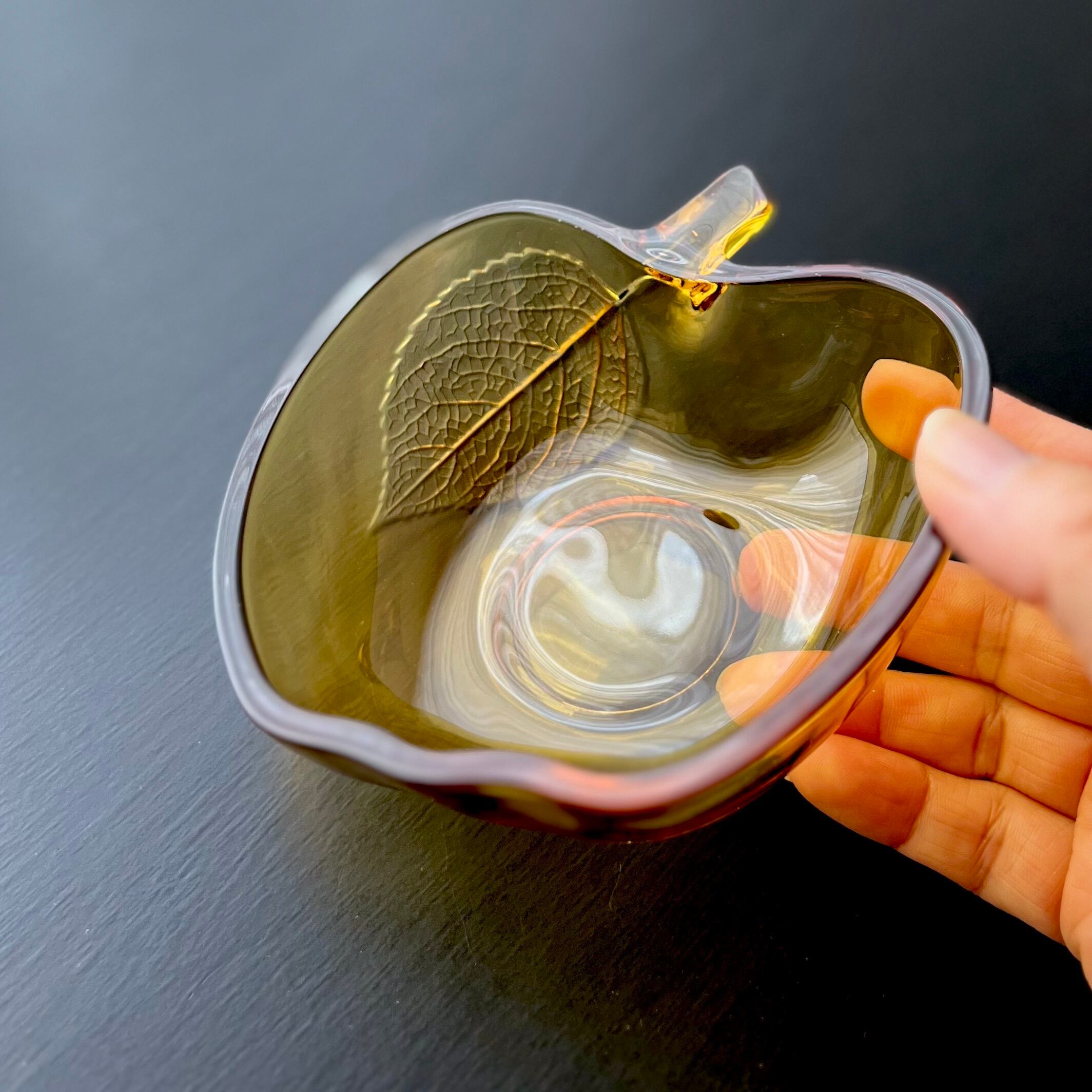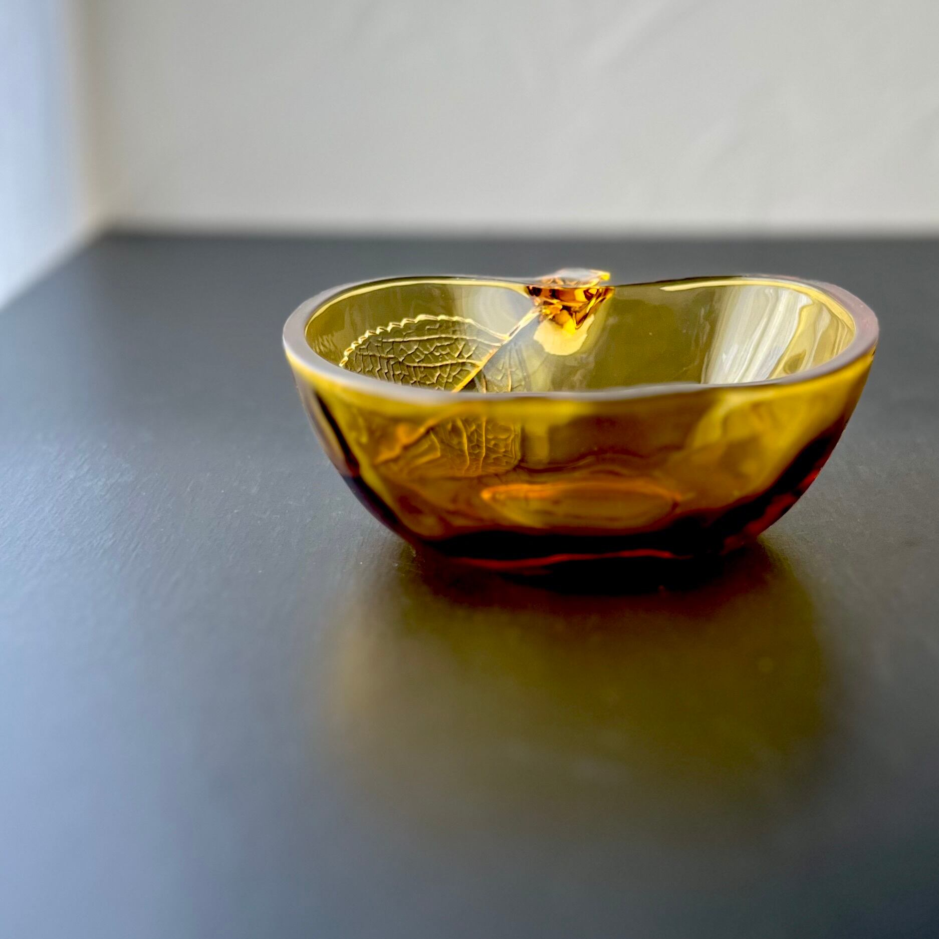 リンゴ型の飴色ガラスボウル。