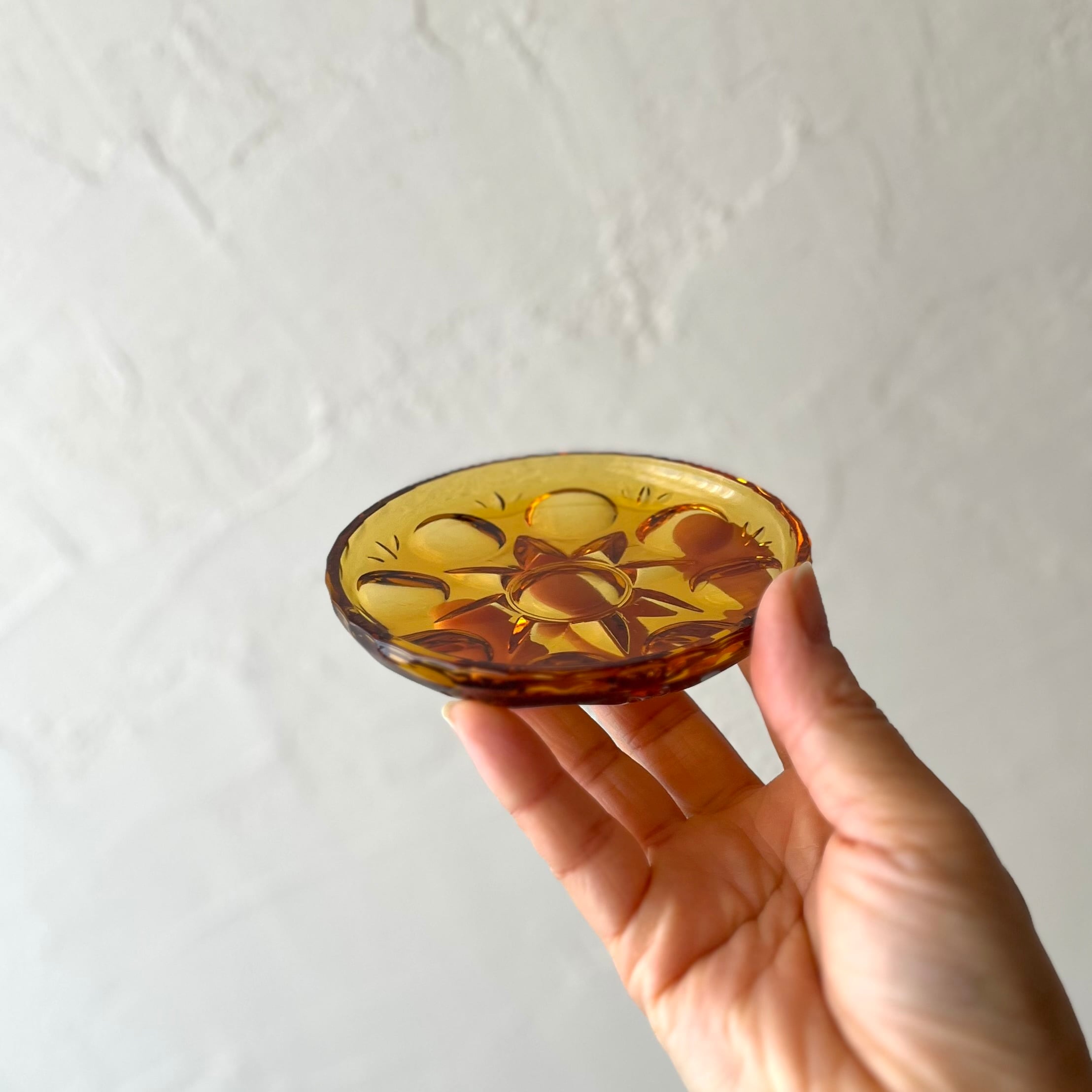 レトロな飴色ガラス製豆皿5枚セット。