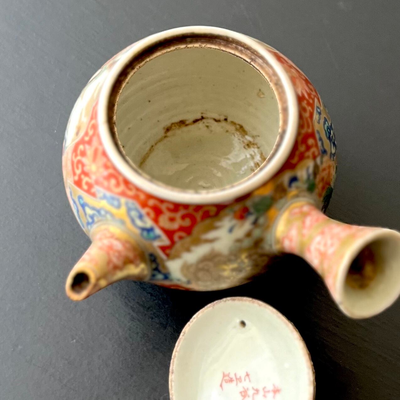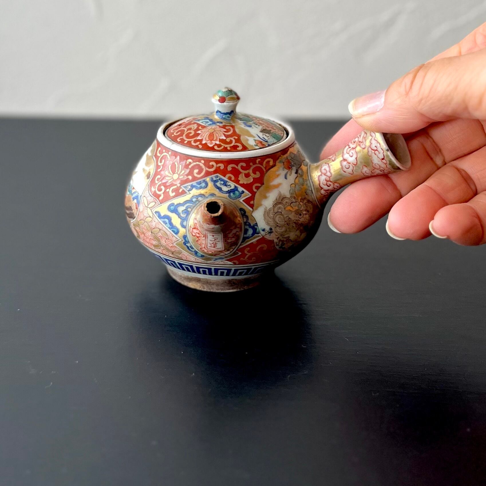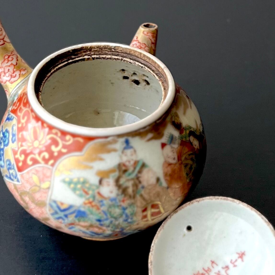 【九谷 赤絵金彩急須 六歌仙画 牡丹に獅子◆明治初期】