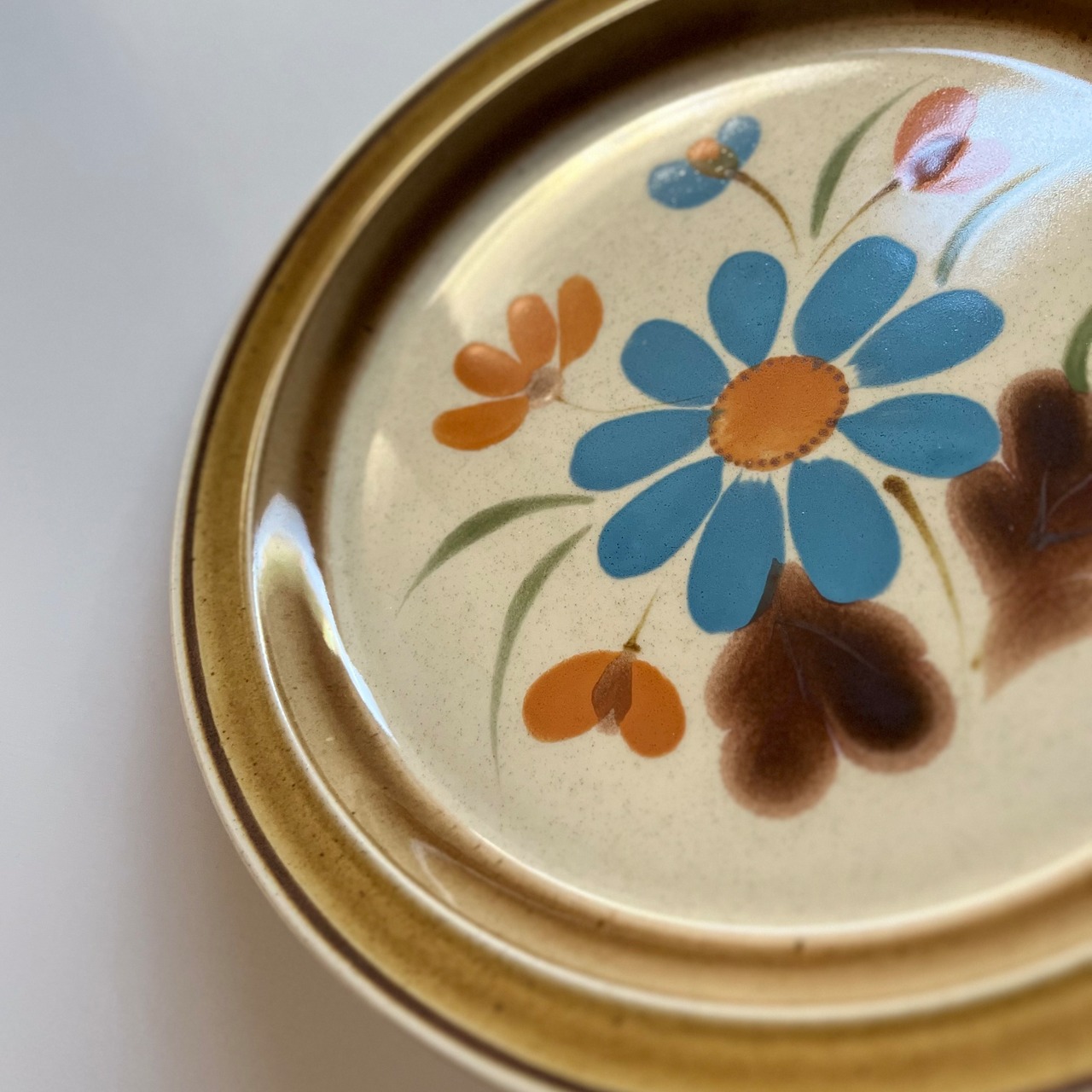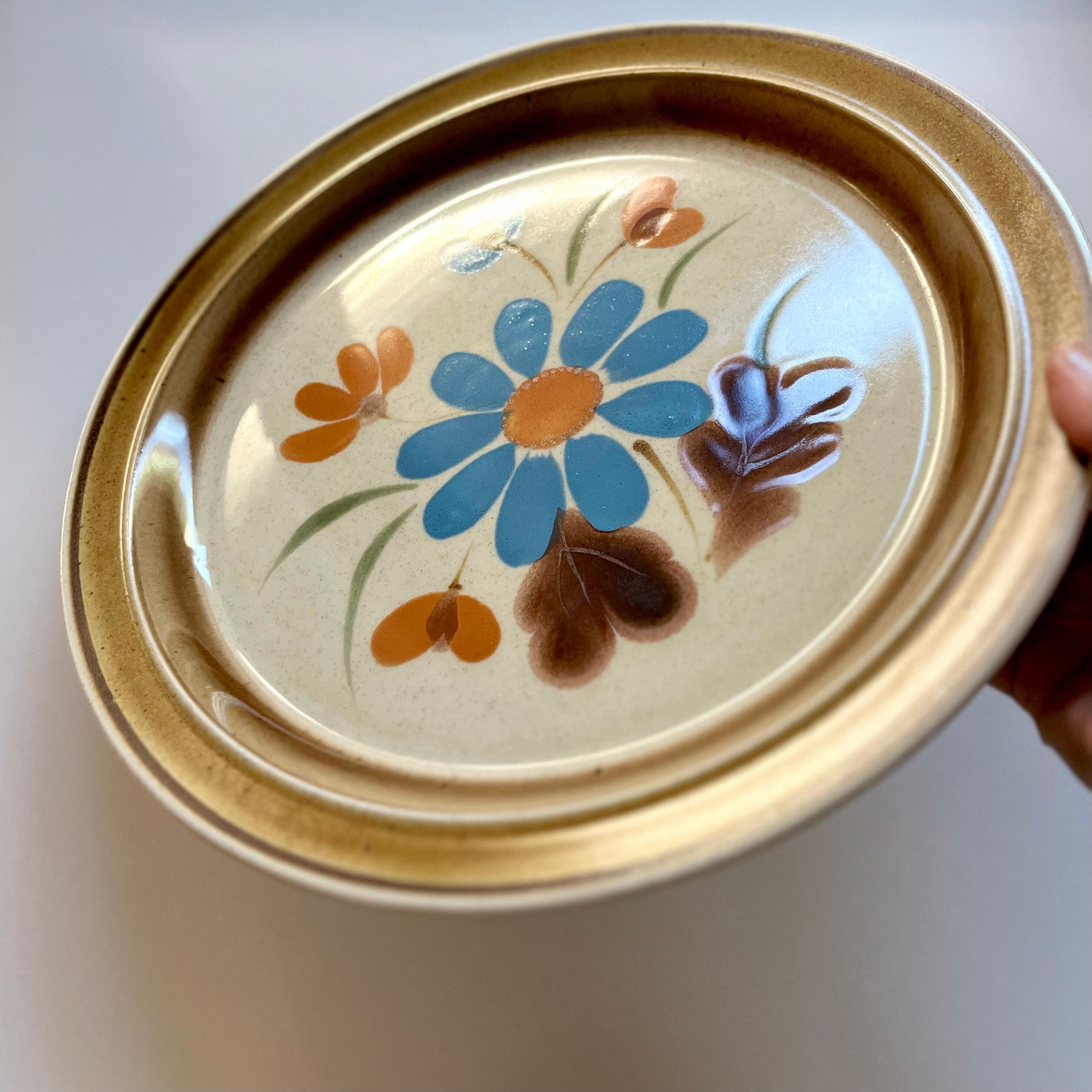 ストーンウェア◆レトロ大皿31cm 水色の野花 PREMIERE