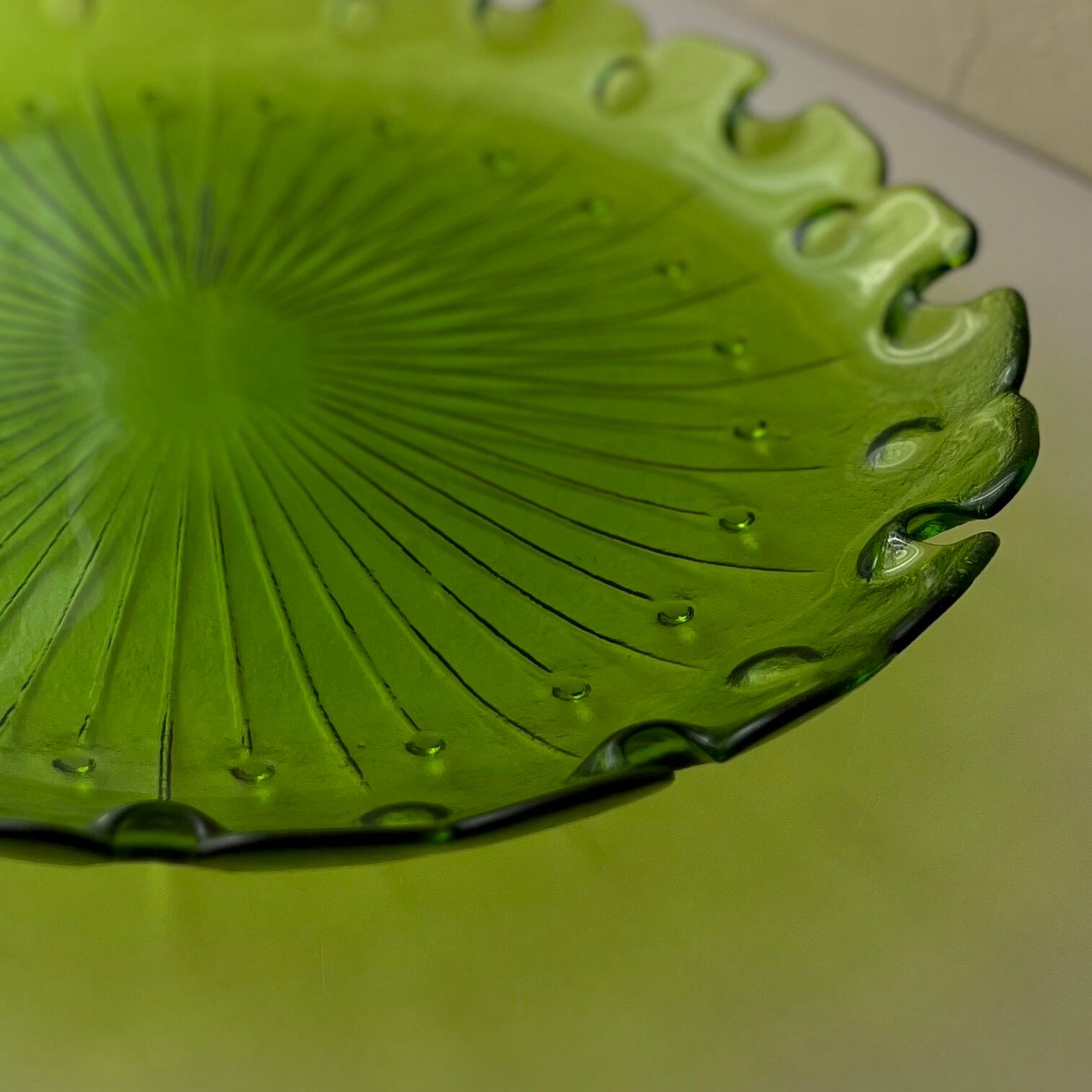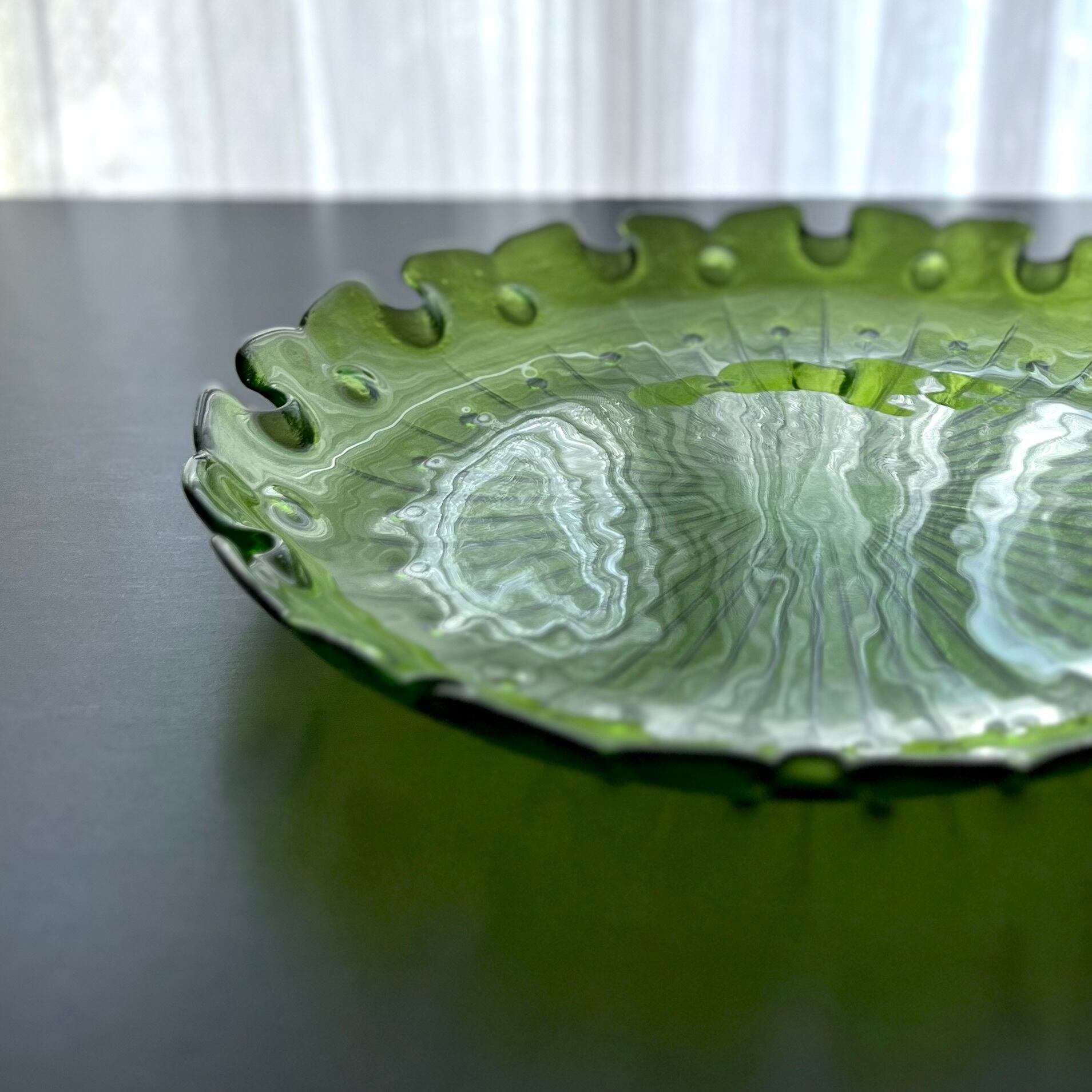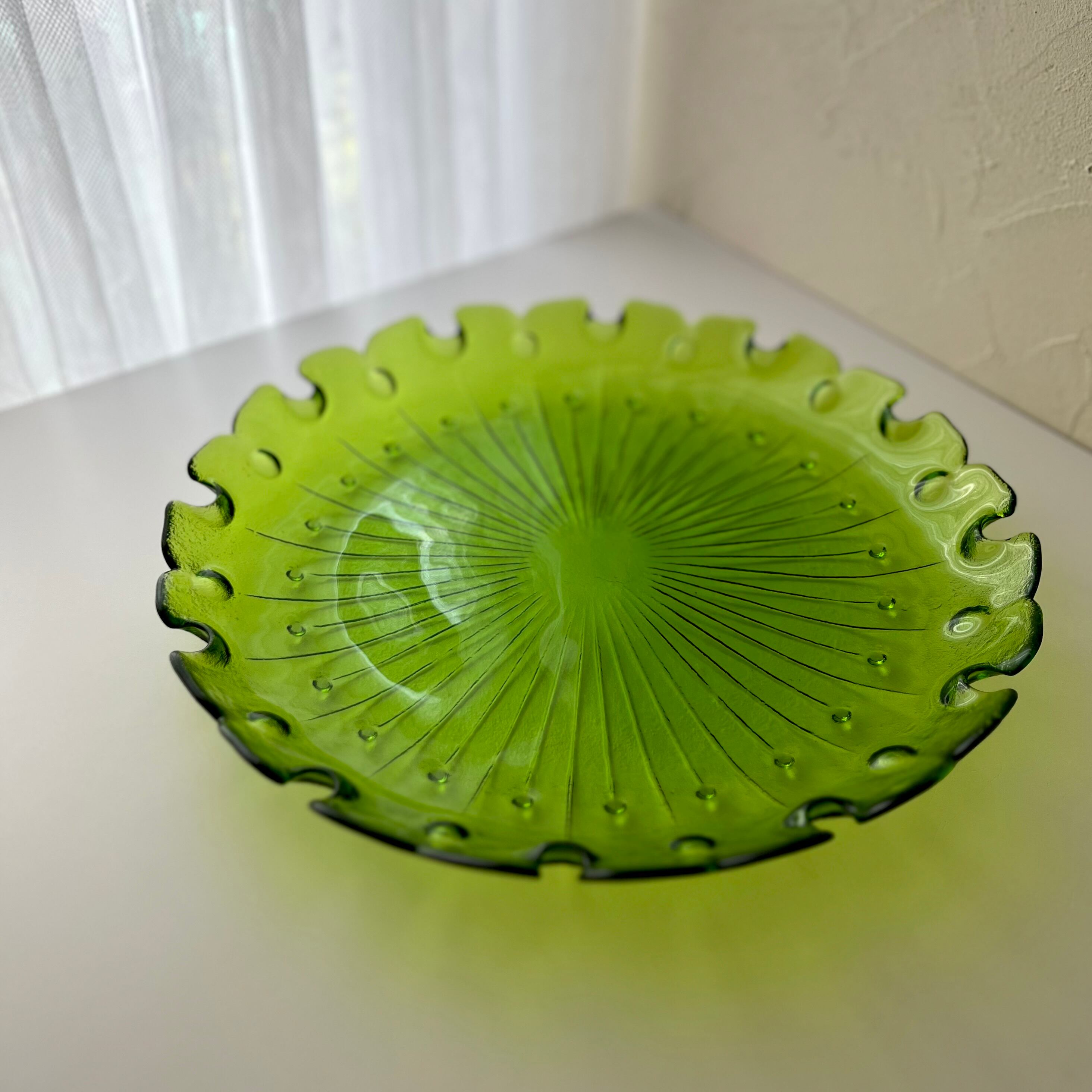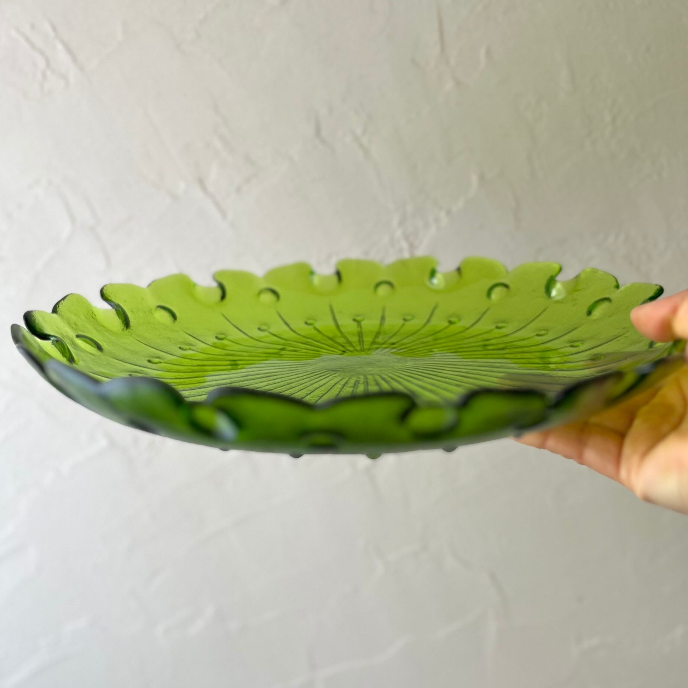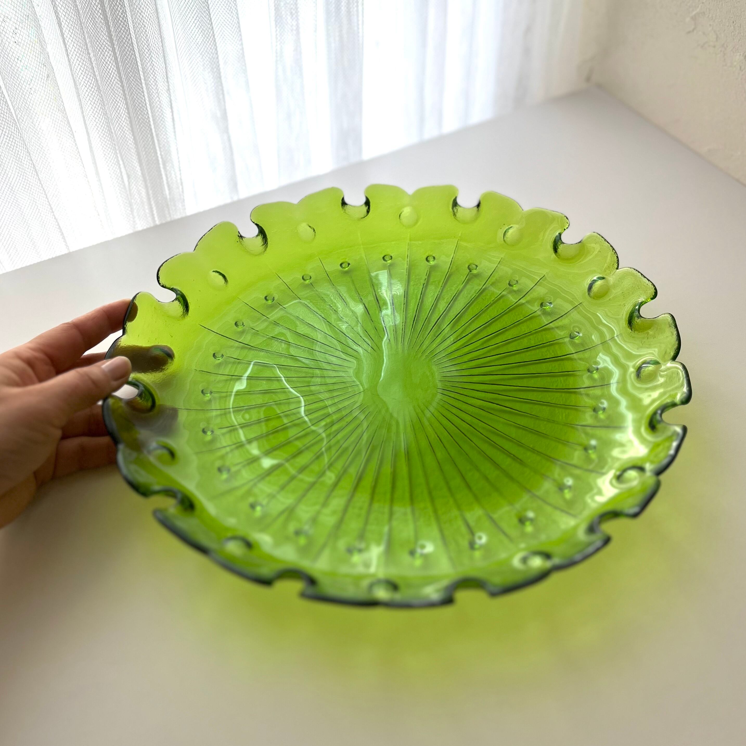 【レトロなガラス大皿 カメイガラス◆澄んだグリーン】