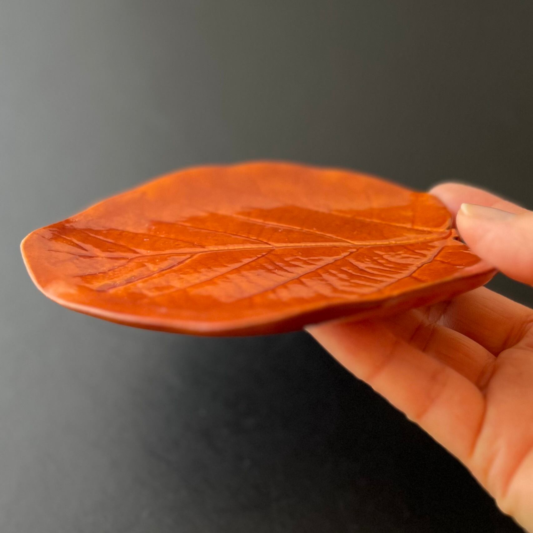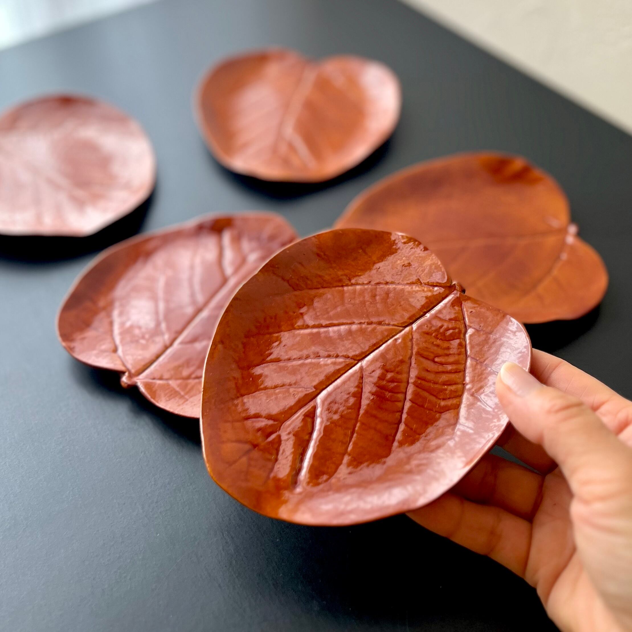 葉っぱ型の春慶漆器。