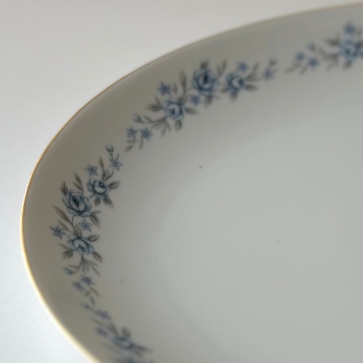 レトロ◆シックなオーバル皿 青いミニ薔薇 楕円 31cm