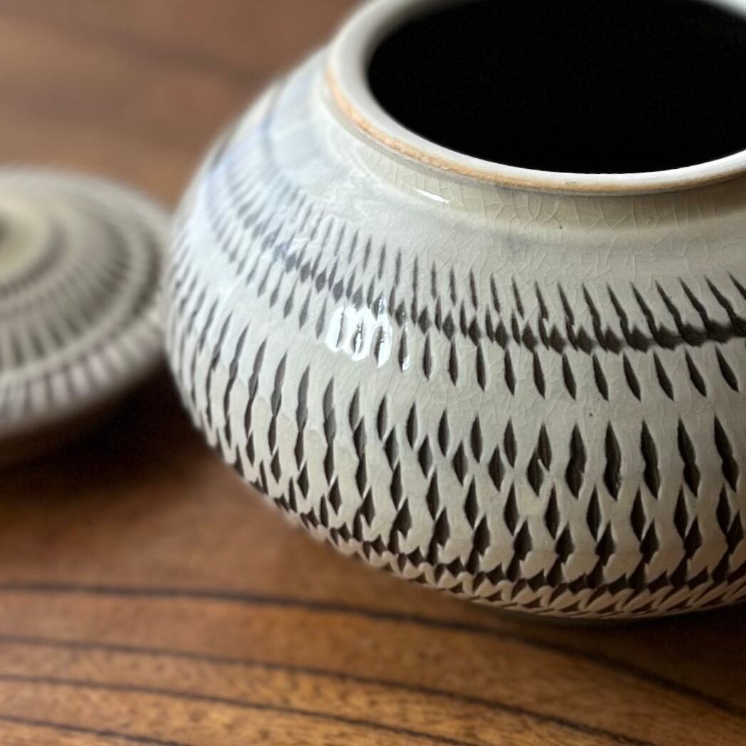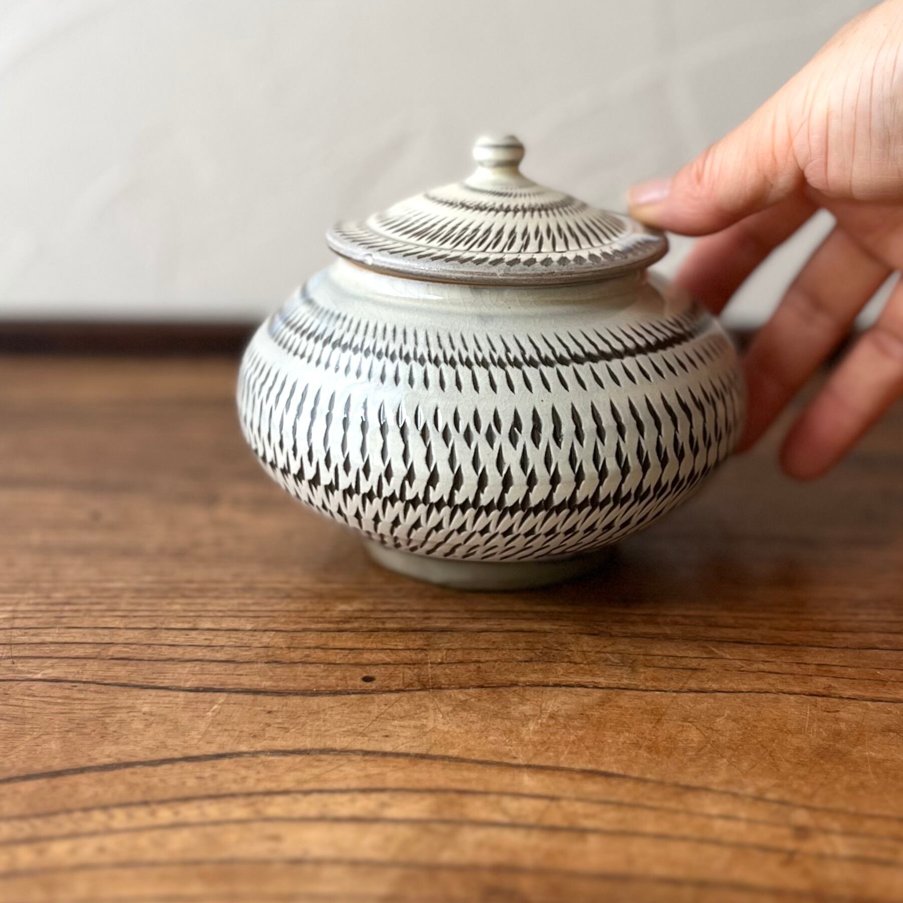 小鹿田焼◆小壺 うるか壺 飛びかんな