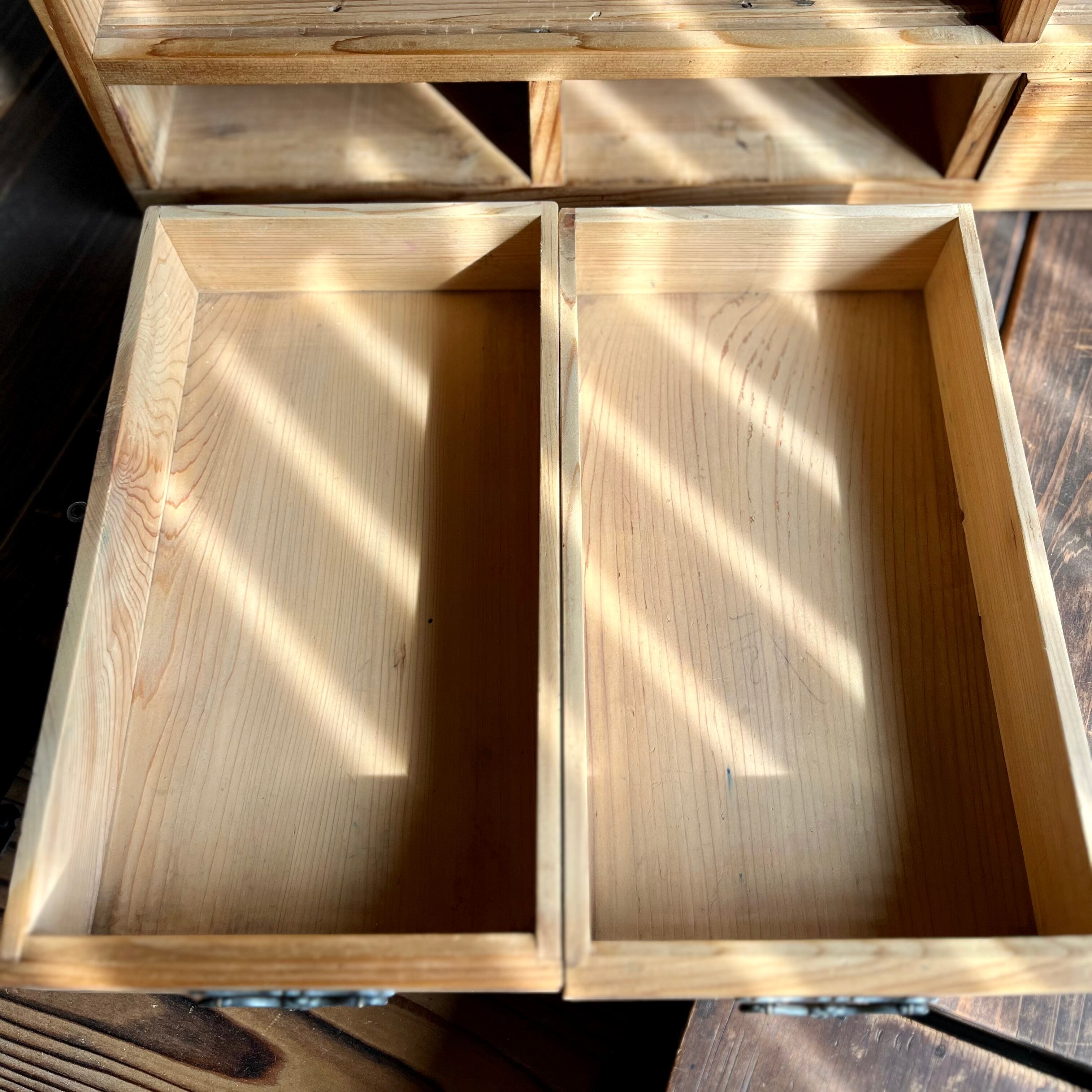 ・引出しはメンテナンス済みで開け閉めはスムーズですが、気温や湿度によっては多少重く感じる場合もございます。予めご了承願います。