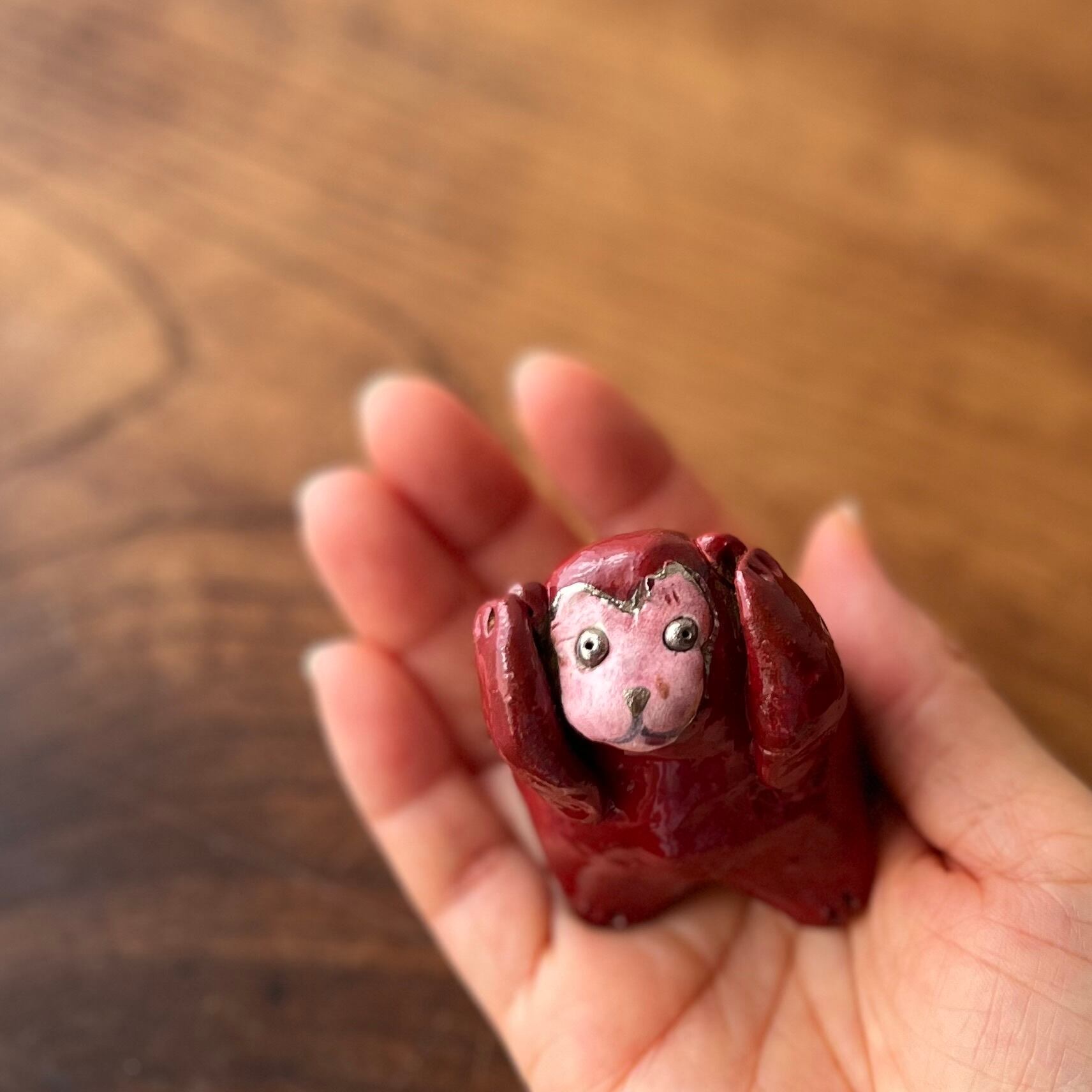 聞かザルさん◆あずき色の干支もの 手のひらサイズ 猿