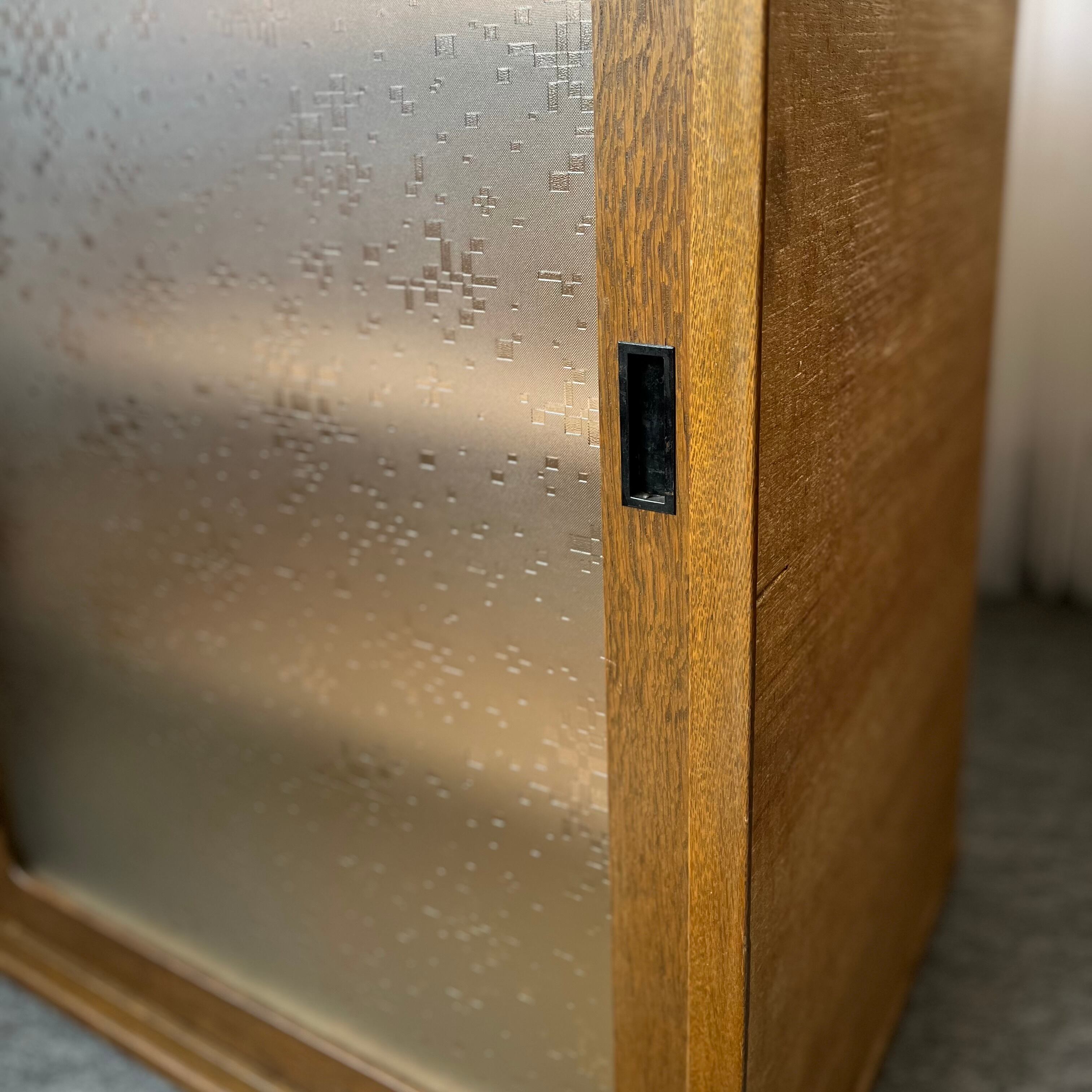※北海道・東北・九州・沖縄県を除き送料無料!レトロ家具◆昭和型板ガラスの引き戸棚 食器棚 靴箱にも 5段棚