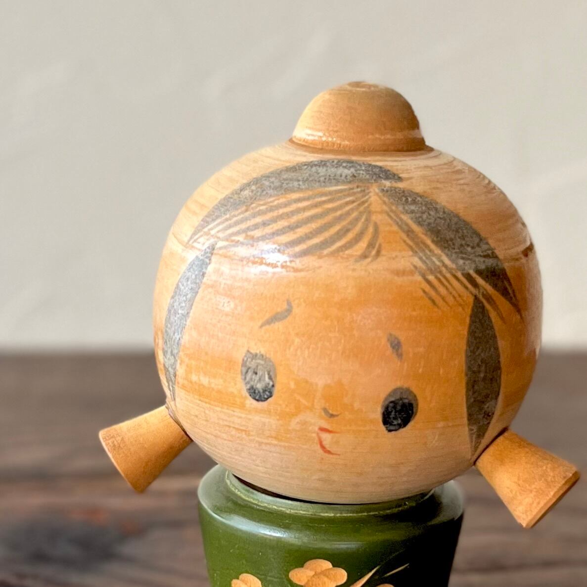 【こまり顔のコケシ 創作こけし おさげ髪】