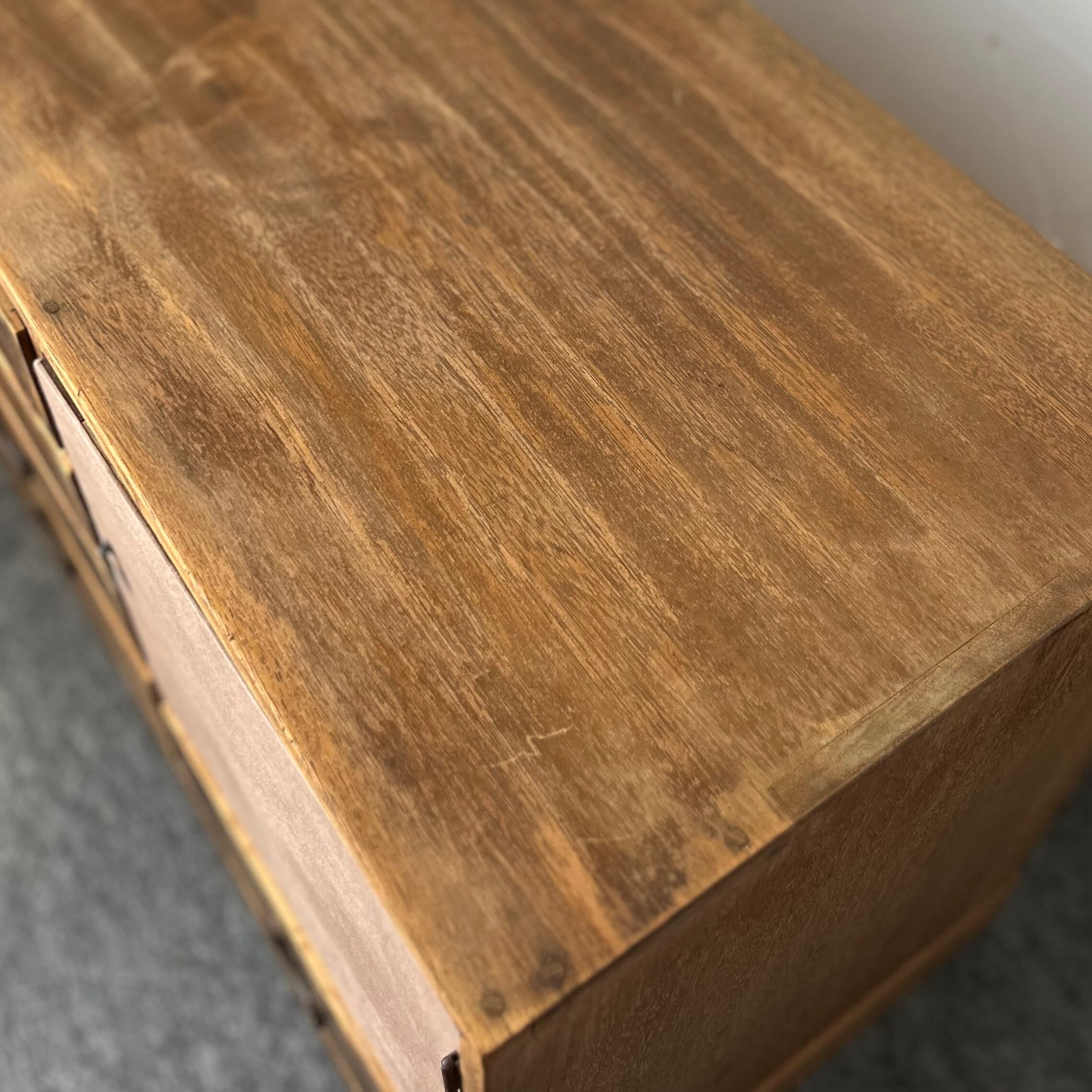 ・経年による傷み(染み、傷、削れ)などございます。ビンテージ家具として良い趣となっております。古い道具の味わいとしてお愉しみください。