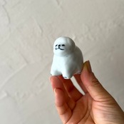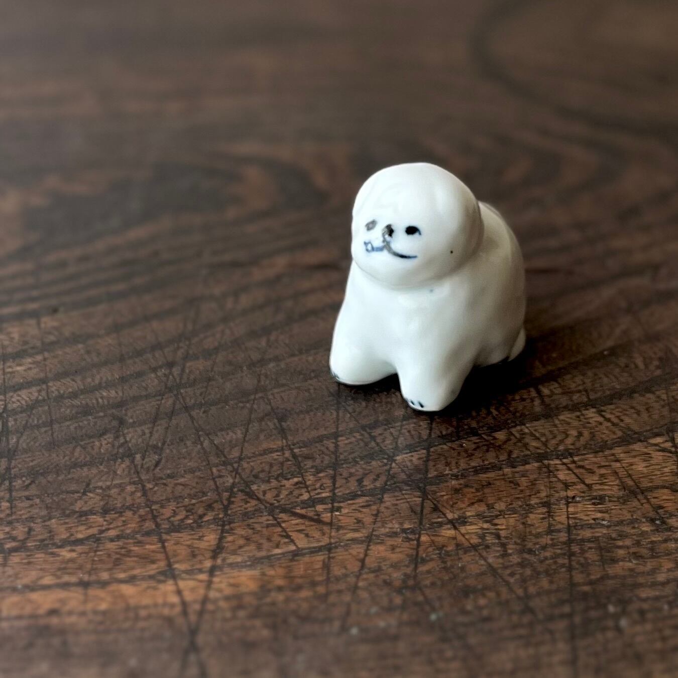 小さなワンコの置物 白磁 ビションフリーゼ