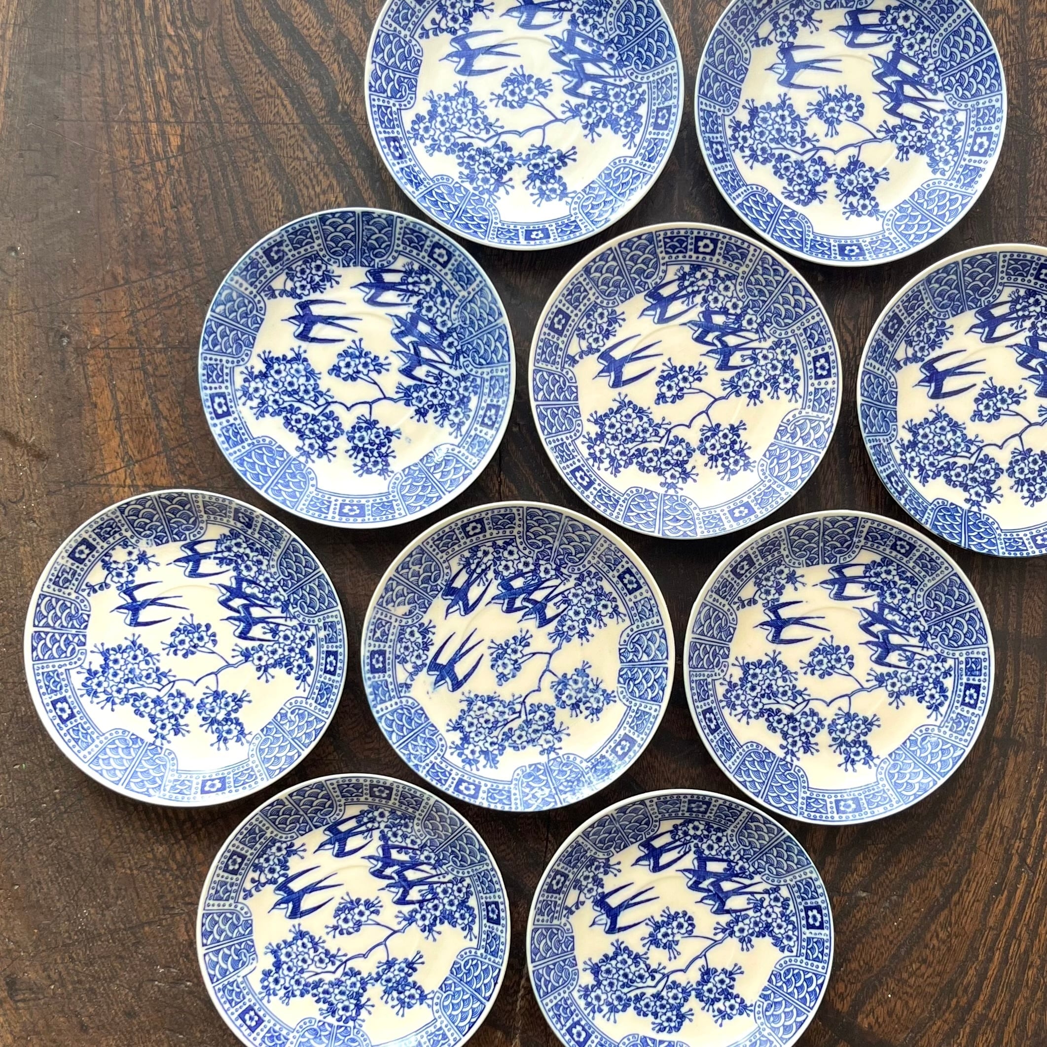 桜と燕を描いた印判小皿の10枚組。