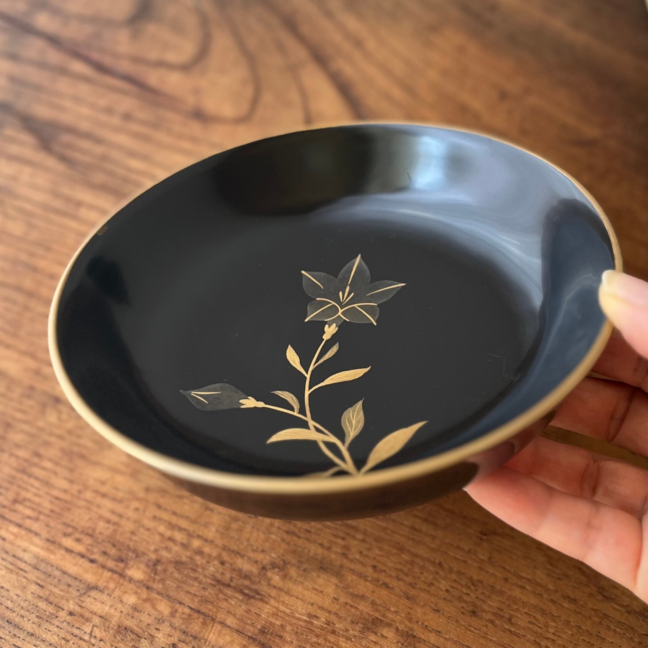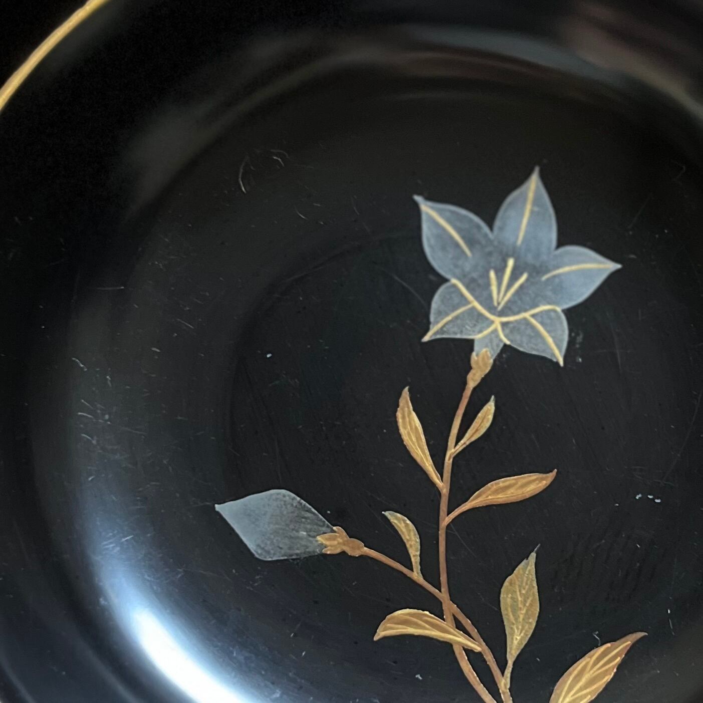 【黒漆塗りの菓子皿7枚組 桔梗の蒔絵】
