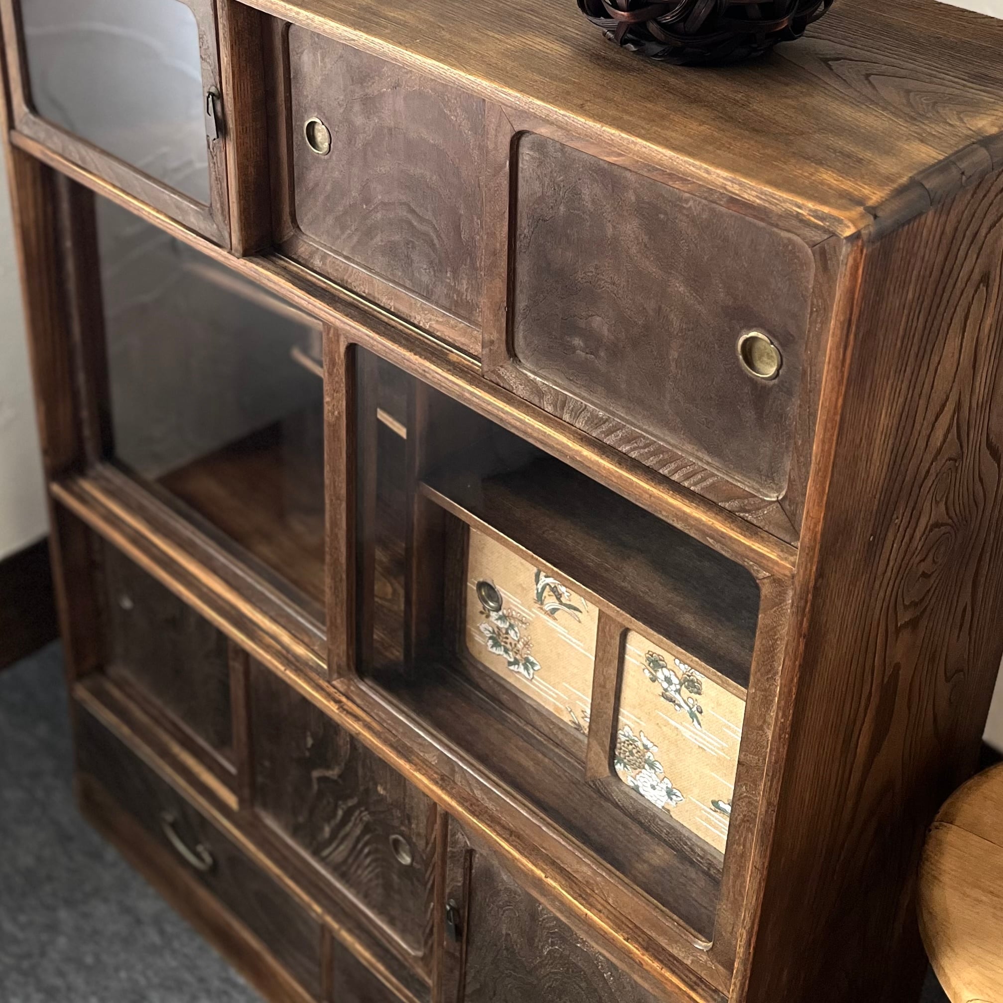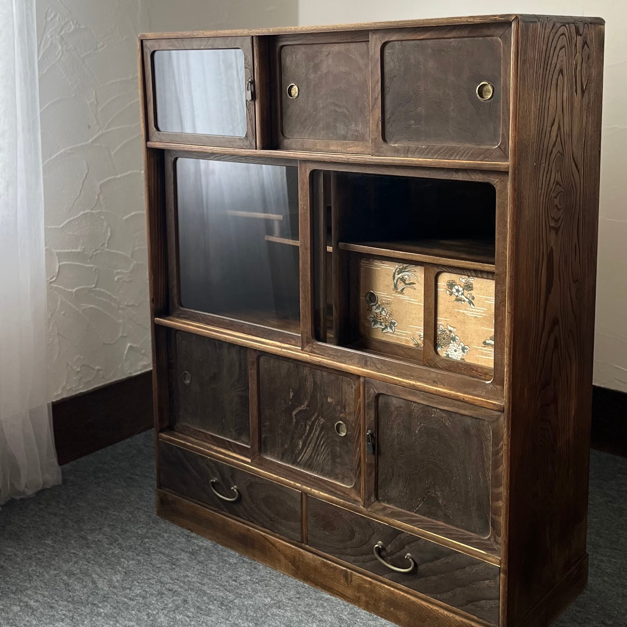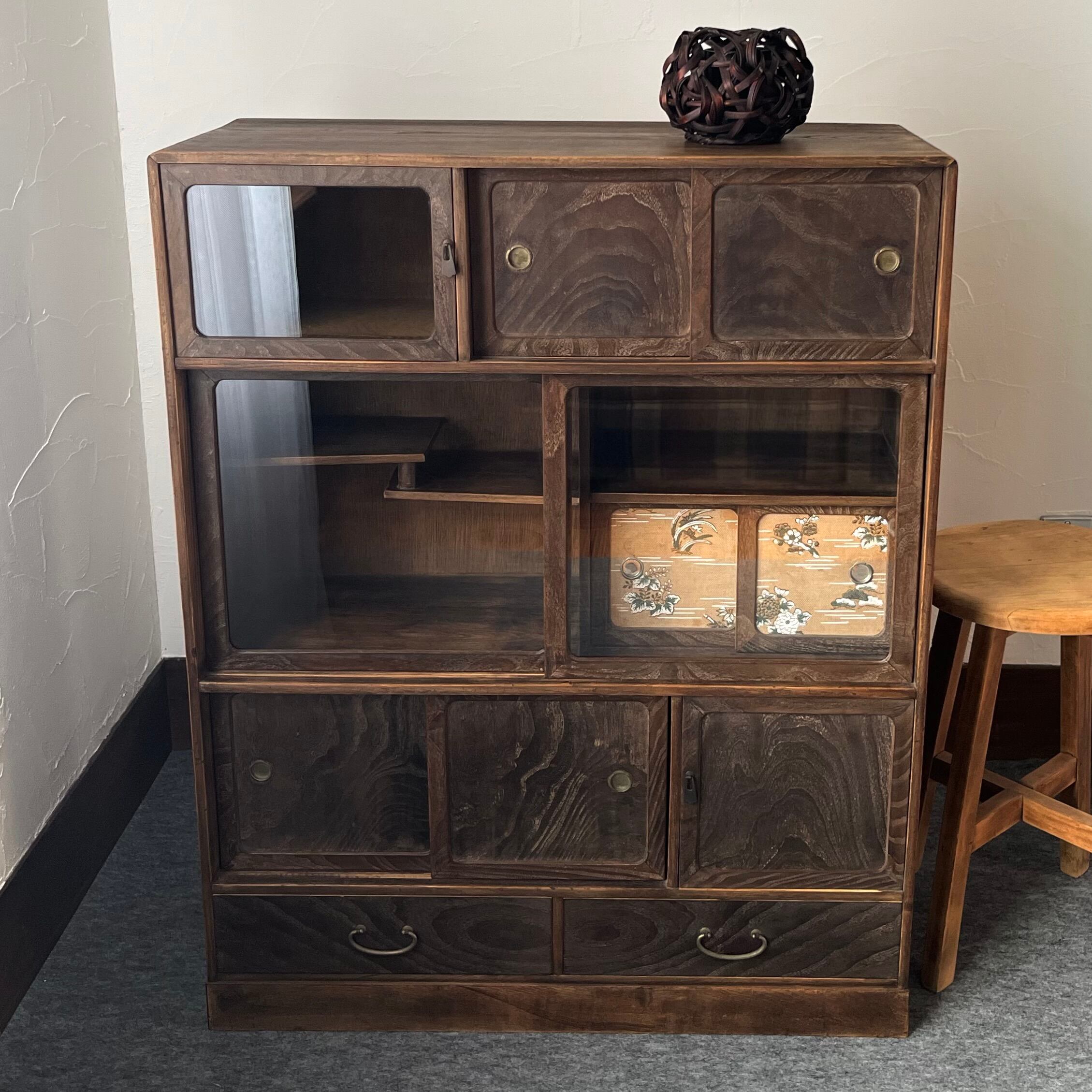 ※北海道・東北・九州・沖縄県を除き送料無料!茶箪笥 飾り棚 昭和初期頃◆古家具 日本のアンティーク家具