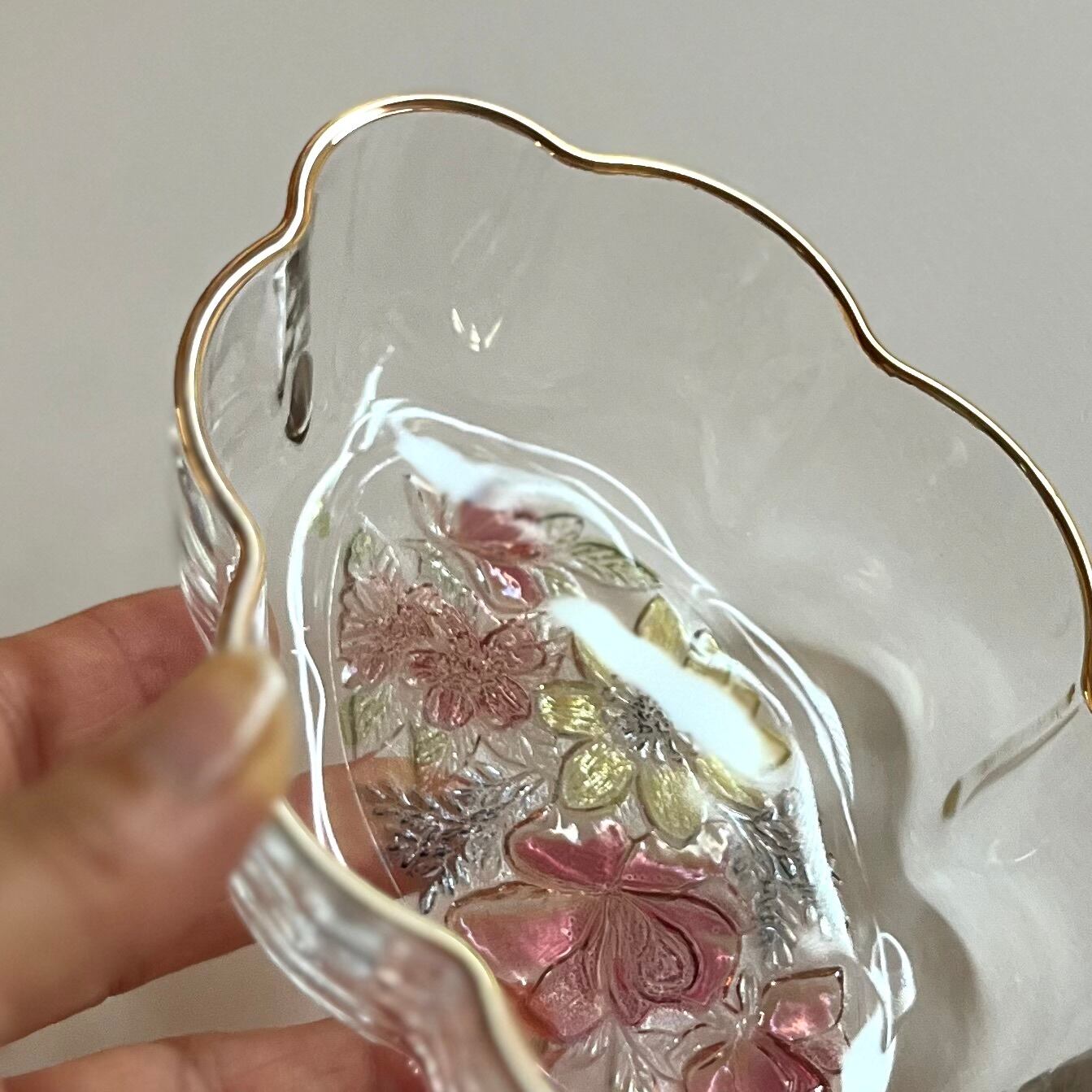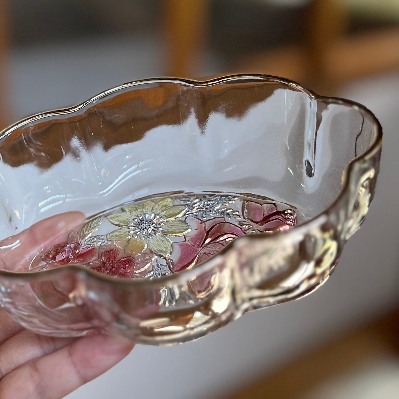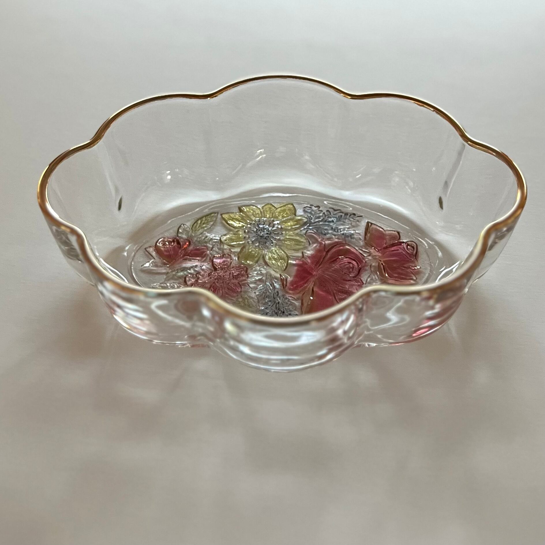 雲型のガラス鉢5個セット 深皿 花柄◆レトロ