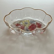 【雲型のガラス鉢5個セット 深皿 花柄◆レトロ】