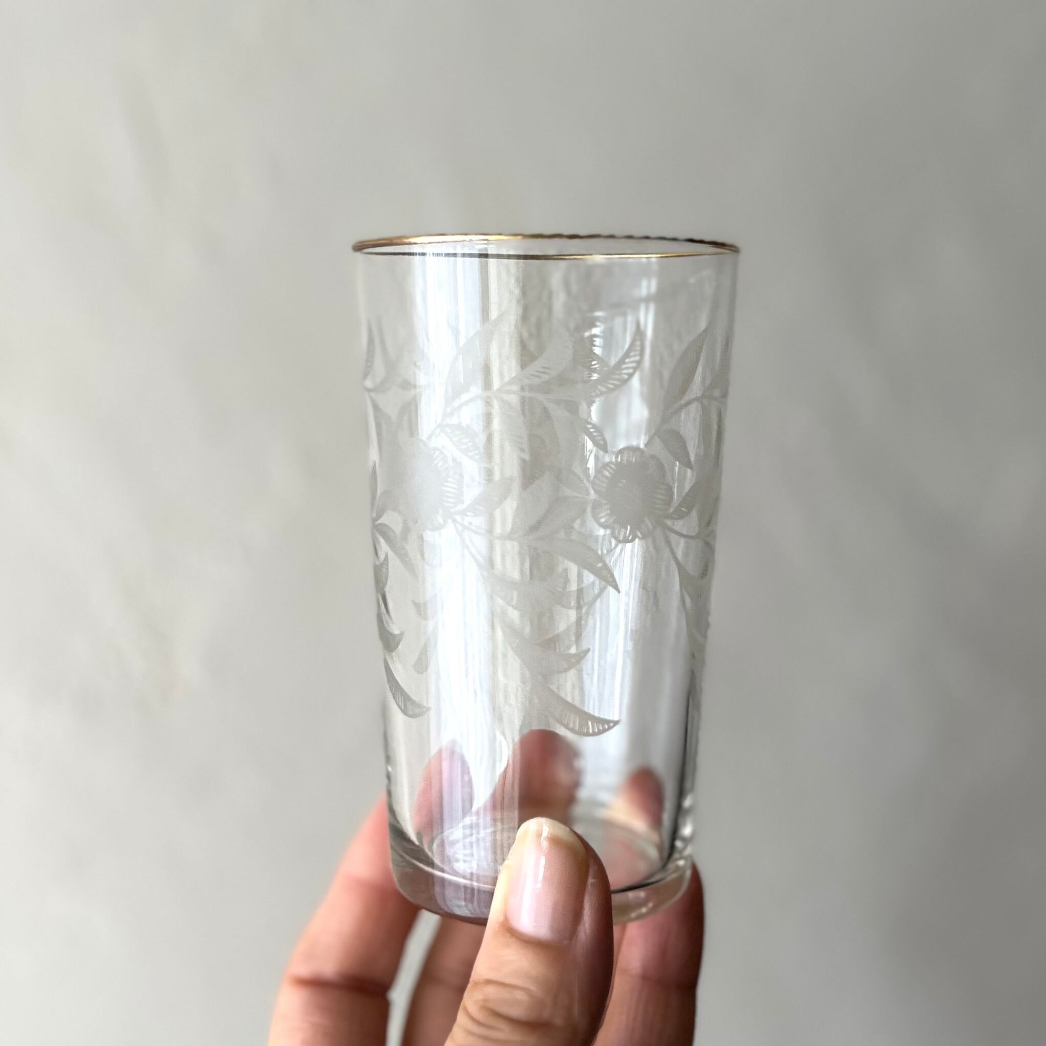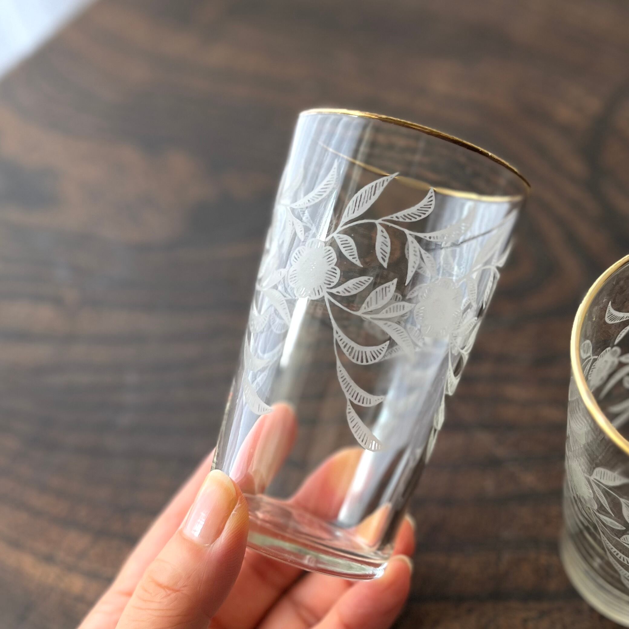 【レトロなタンブラー2個セット 花とリーフの模様】
