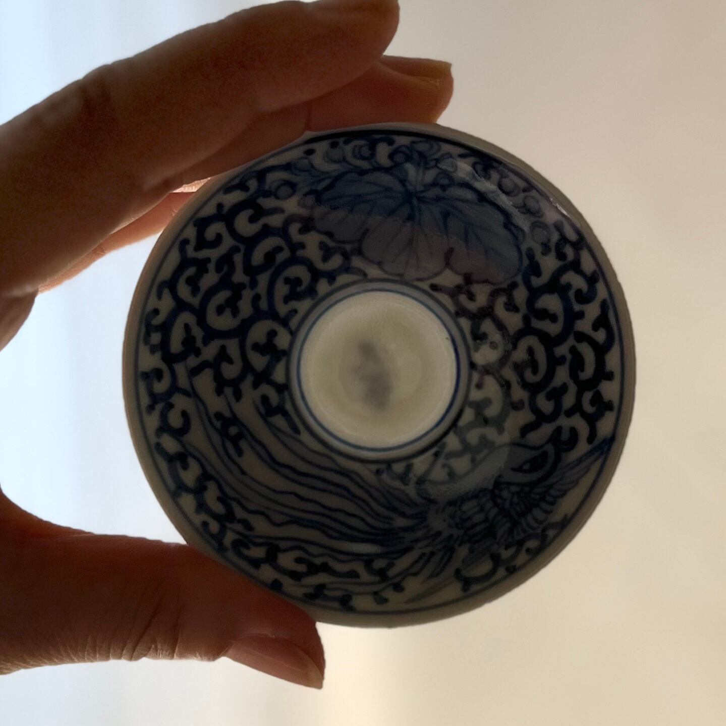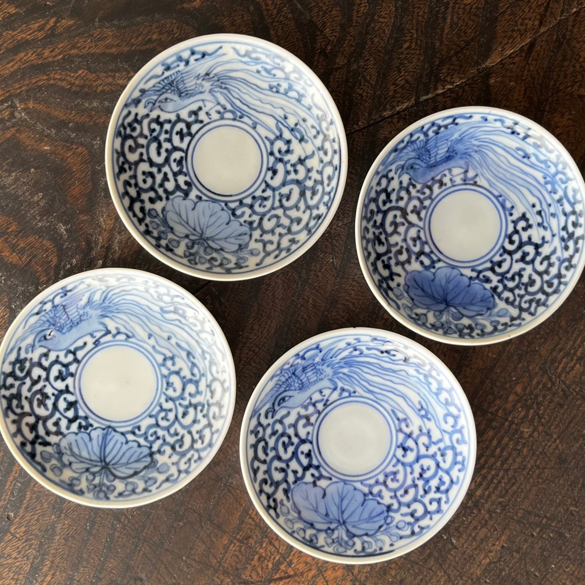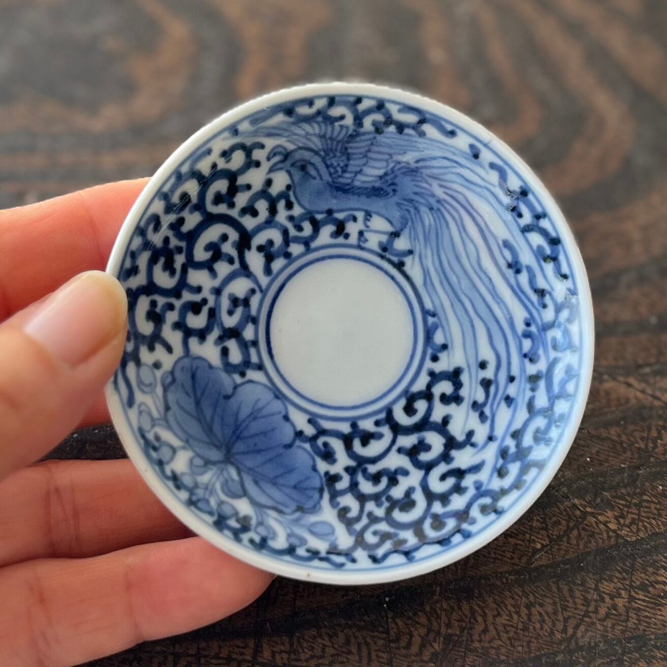 九谷焼 染付 小さな茶器 桐に鳳凰 唐草文様