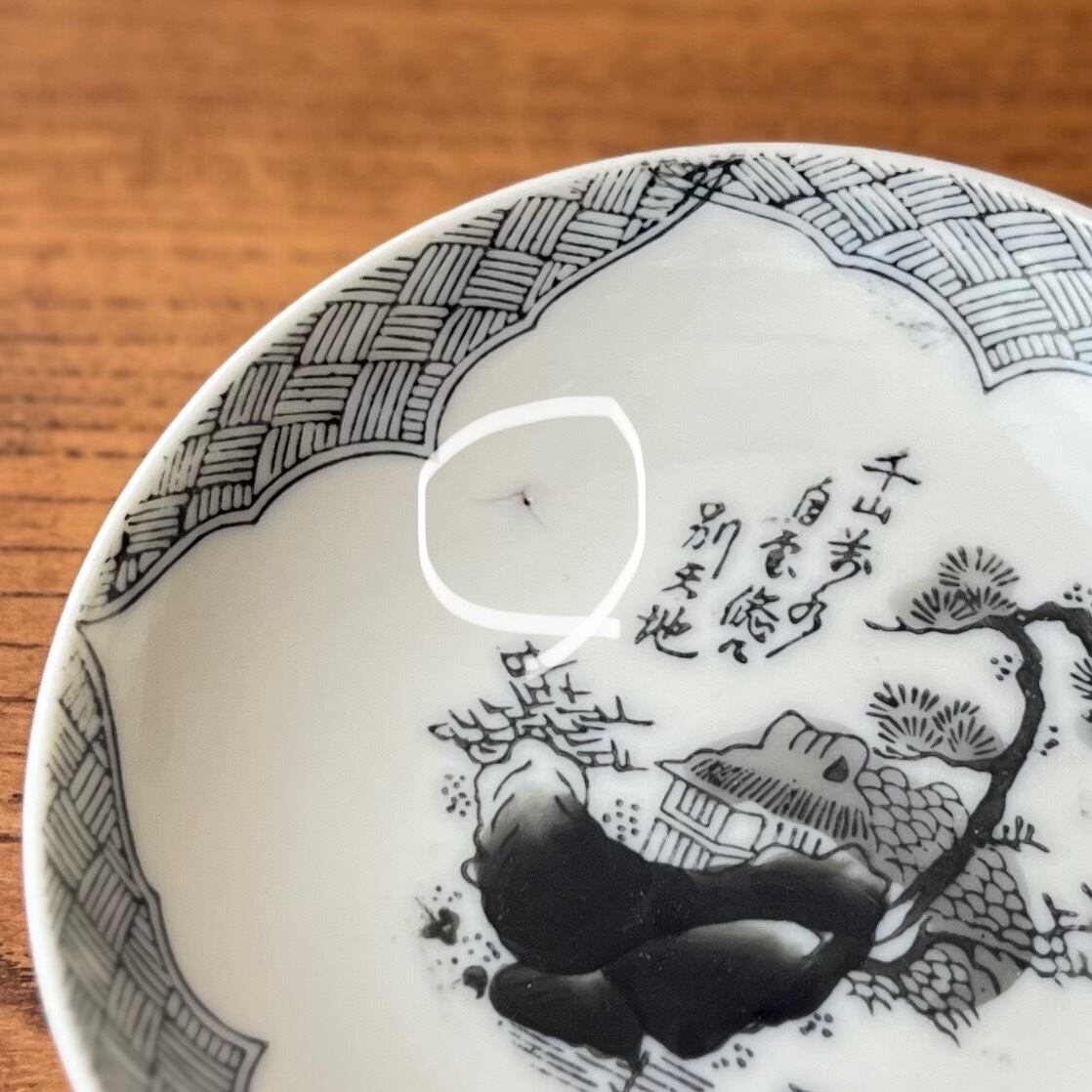 ・印判手特有の印刷のズレやカスレなどございます。大変古いお品です。印判のズレや窯キズなどは古いものの趣ととらえ愉しんでいただけたらと思います。