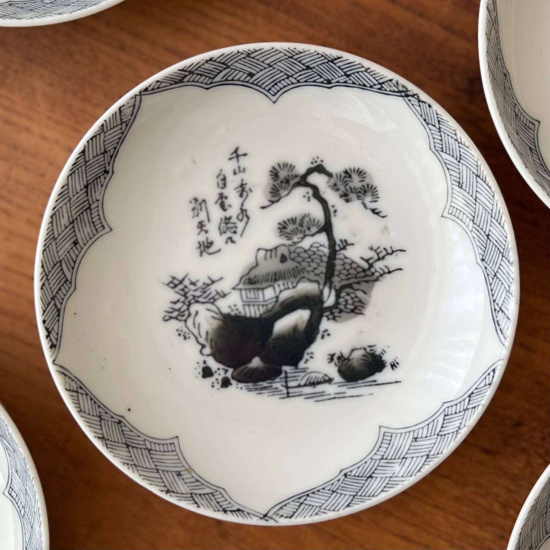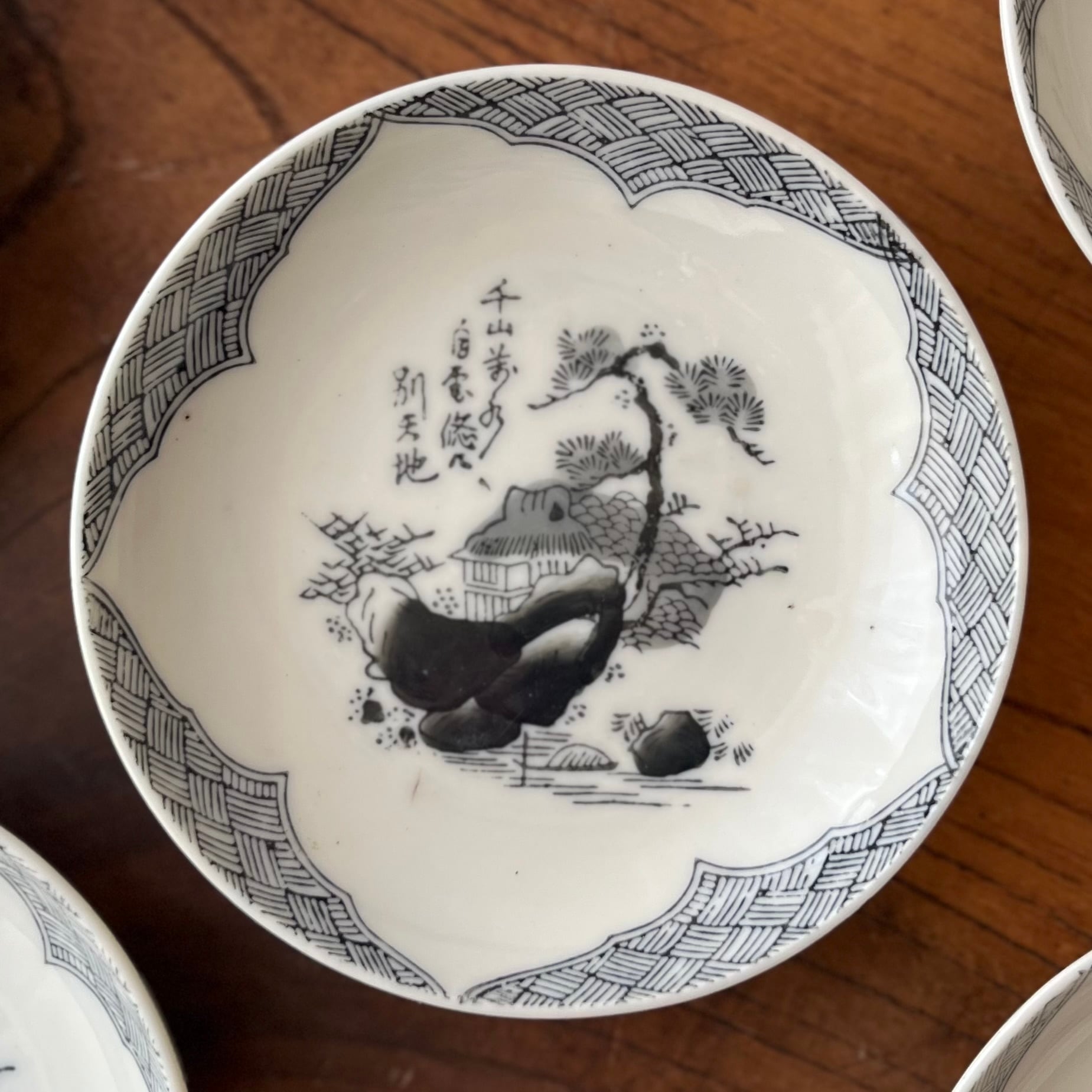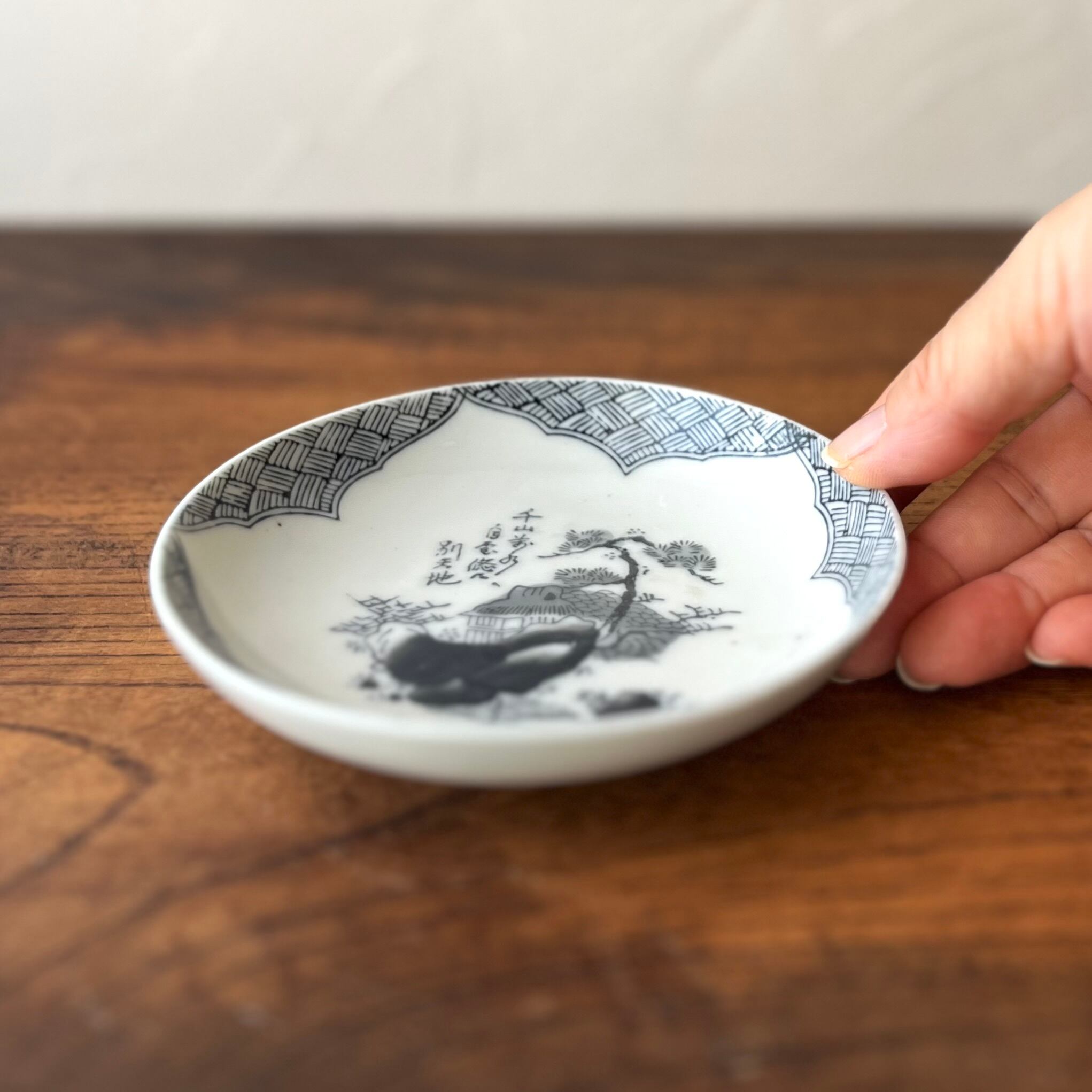 【印判小皿 墨色 山水図 3枚組◆大正から昭和初期】
