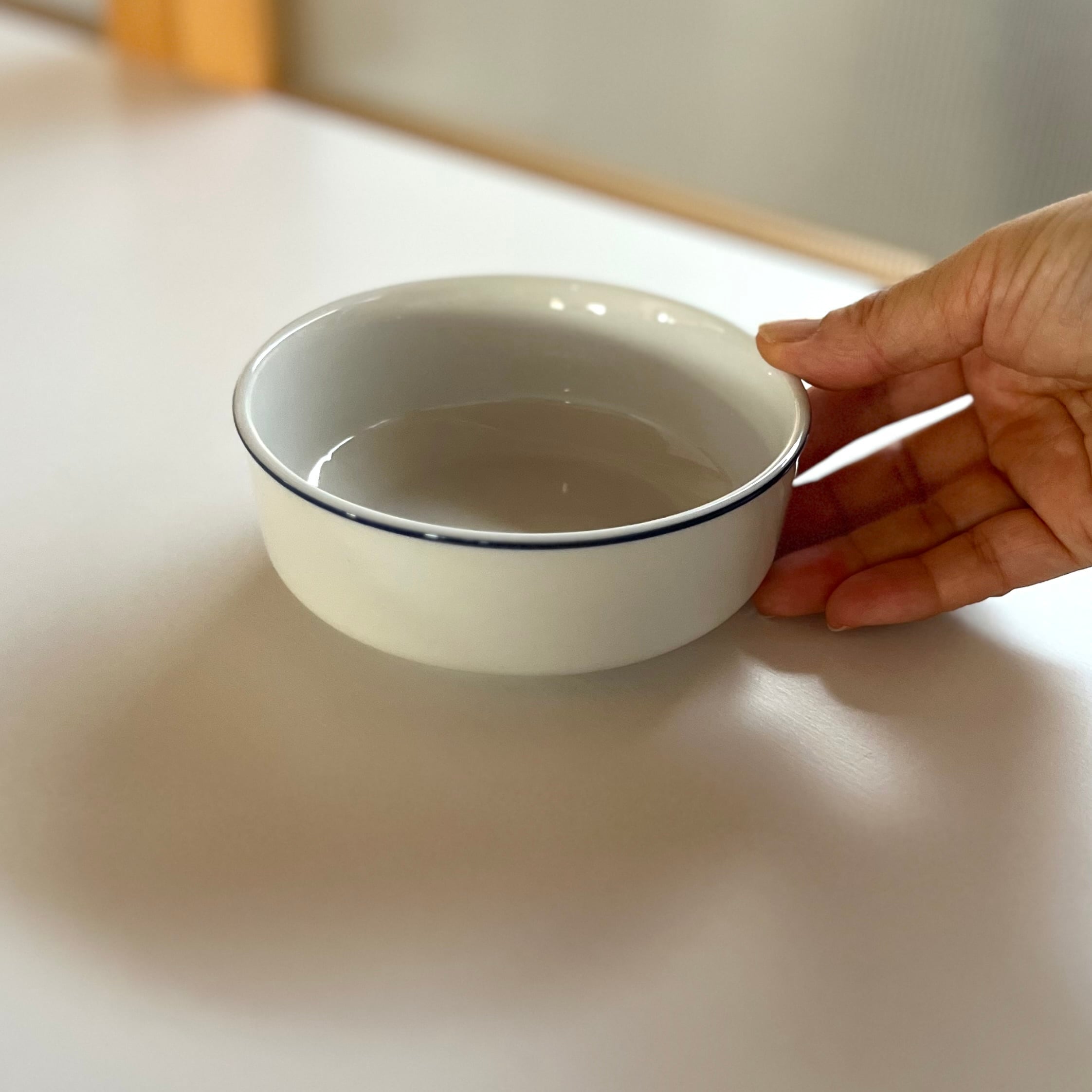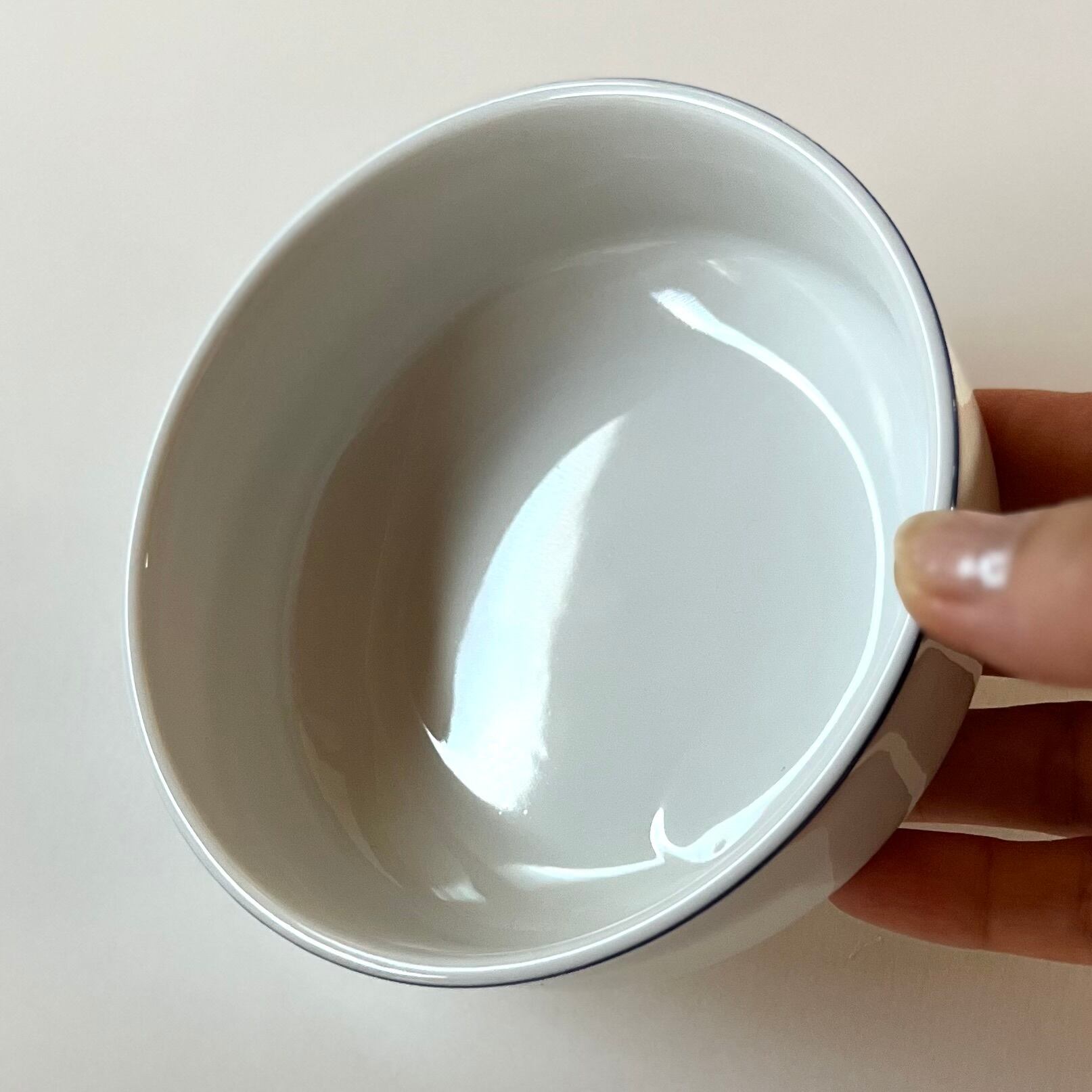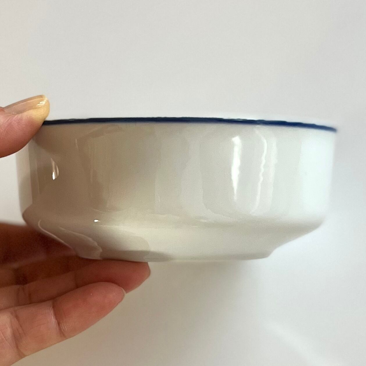 白磁に青いラインが施されたサラダボウル。