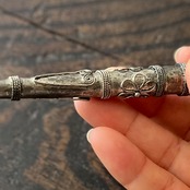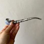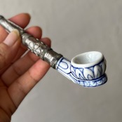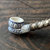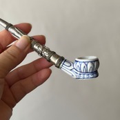 【キセル 時代物 陶磁器 染付 金属製花のモチーフ】