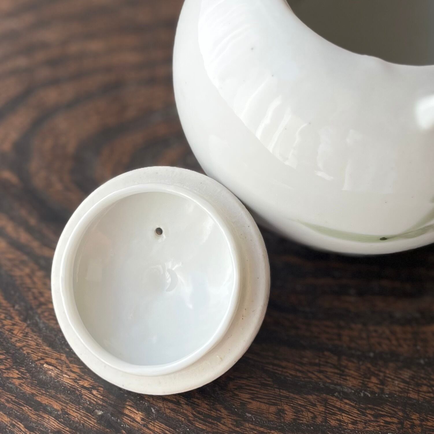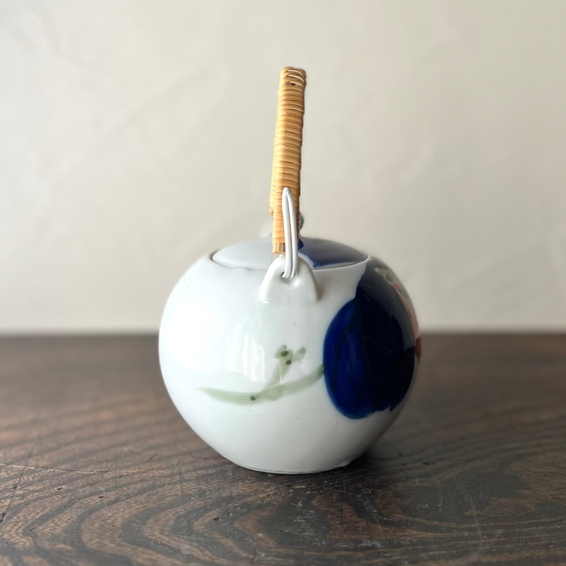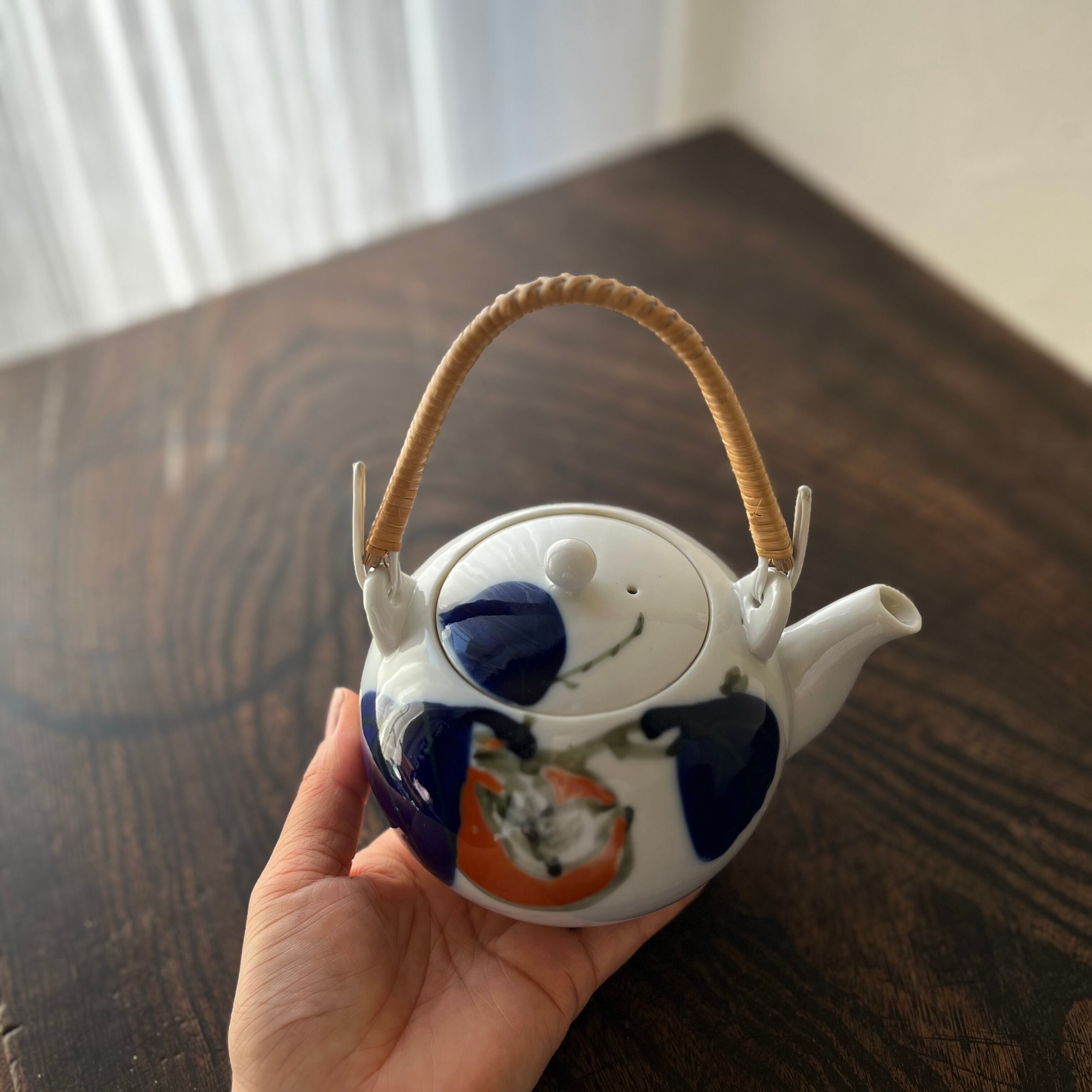 【柿の絵柄の土瓶 白磁 持ち手付◆昭和前期】