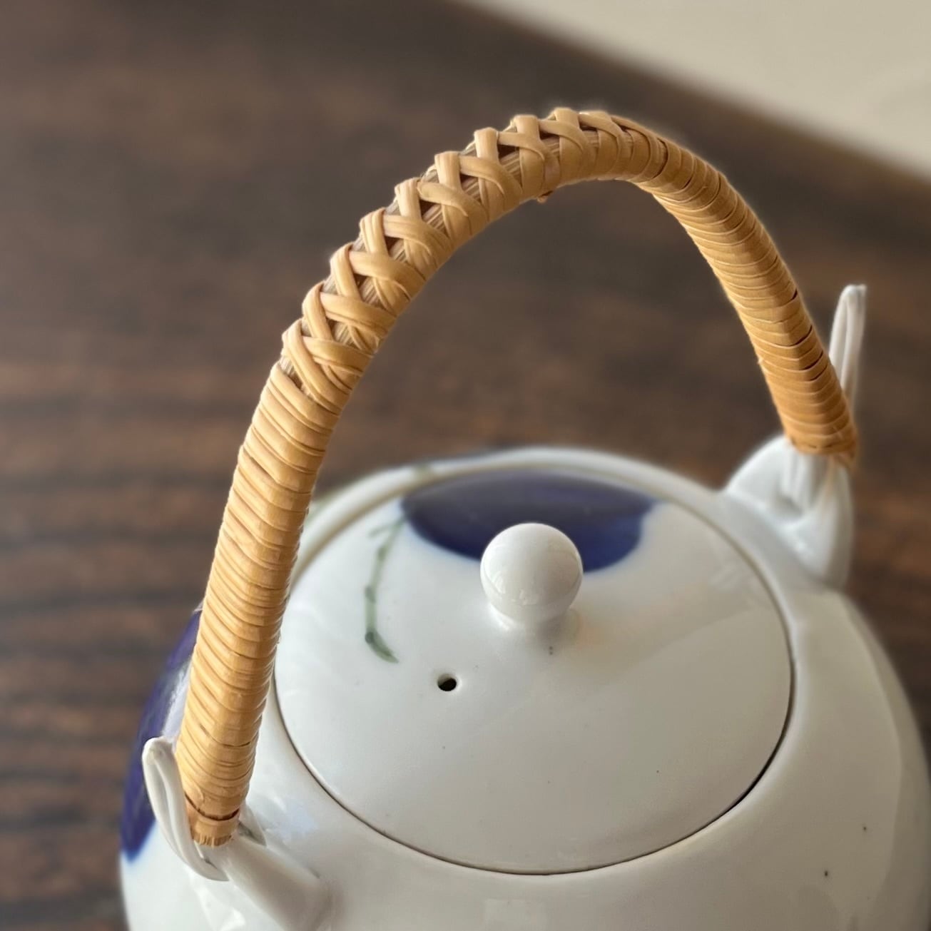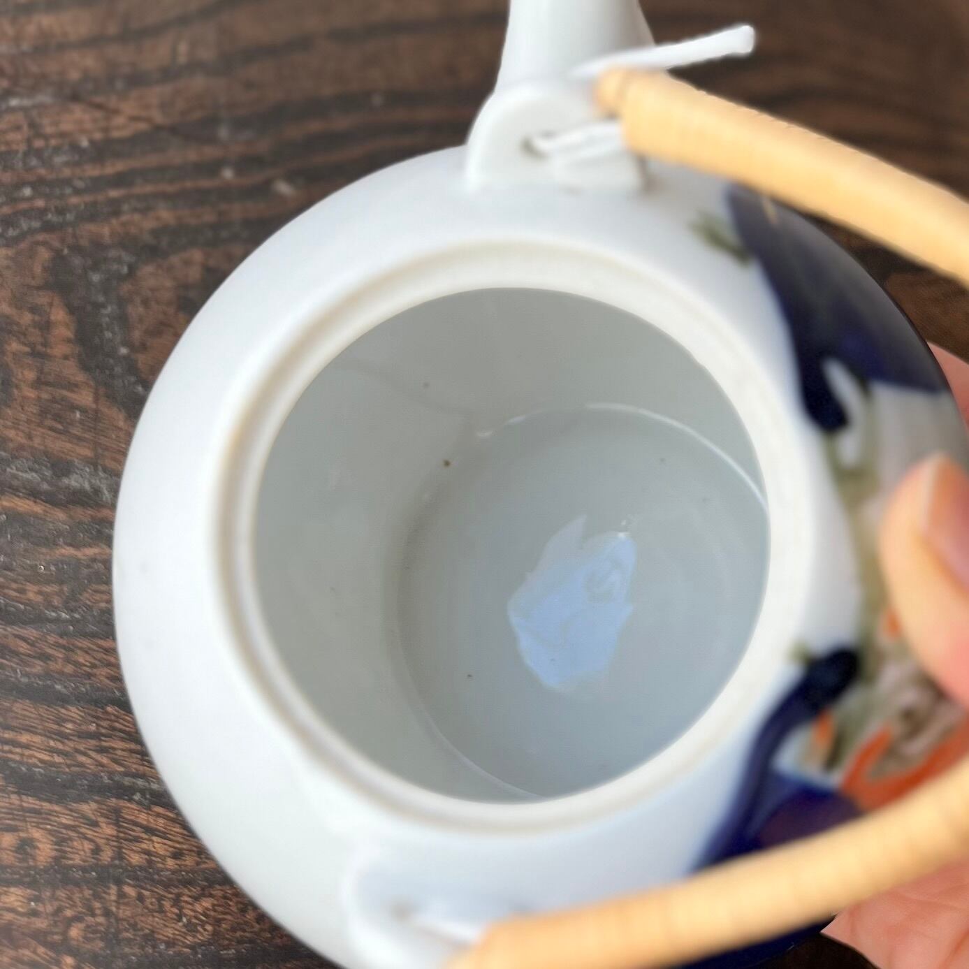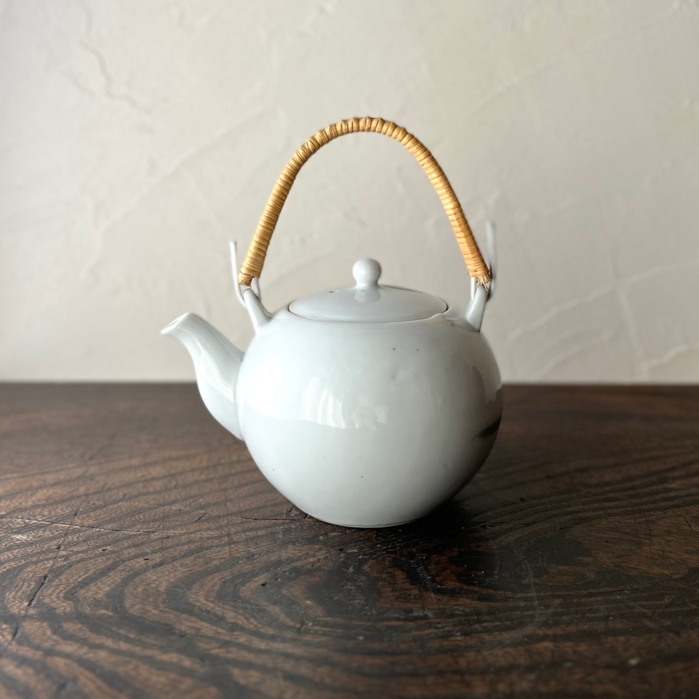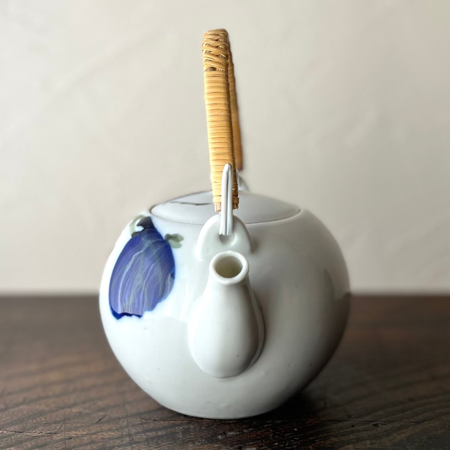 【柿の絵柄の土瓶 白磁 持ち手付◆昭和前期】