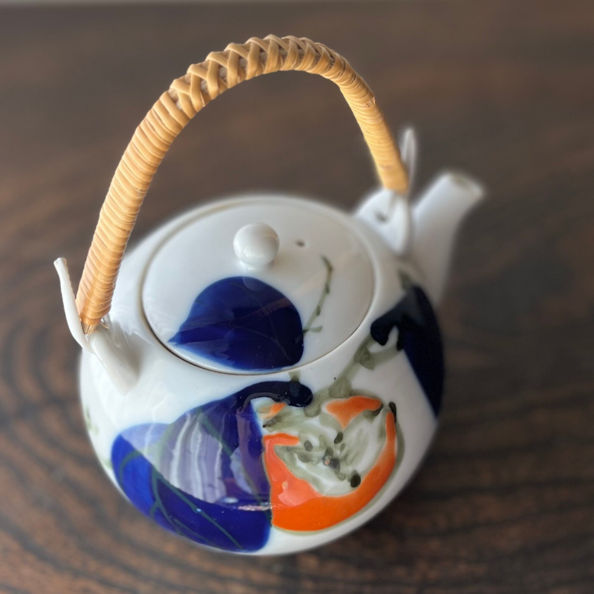 柿の実と濃紺の葉のコントラストが印象的な土瓶。