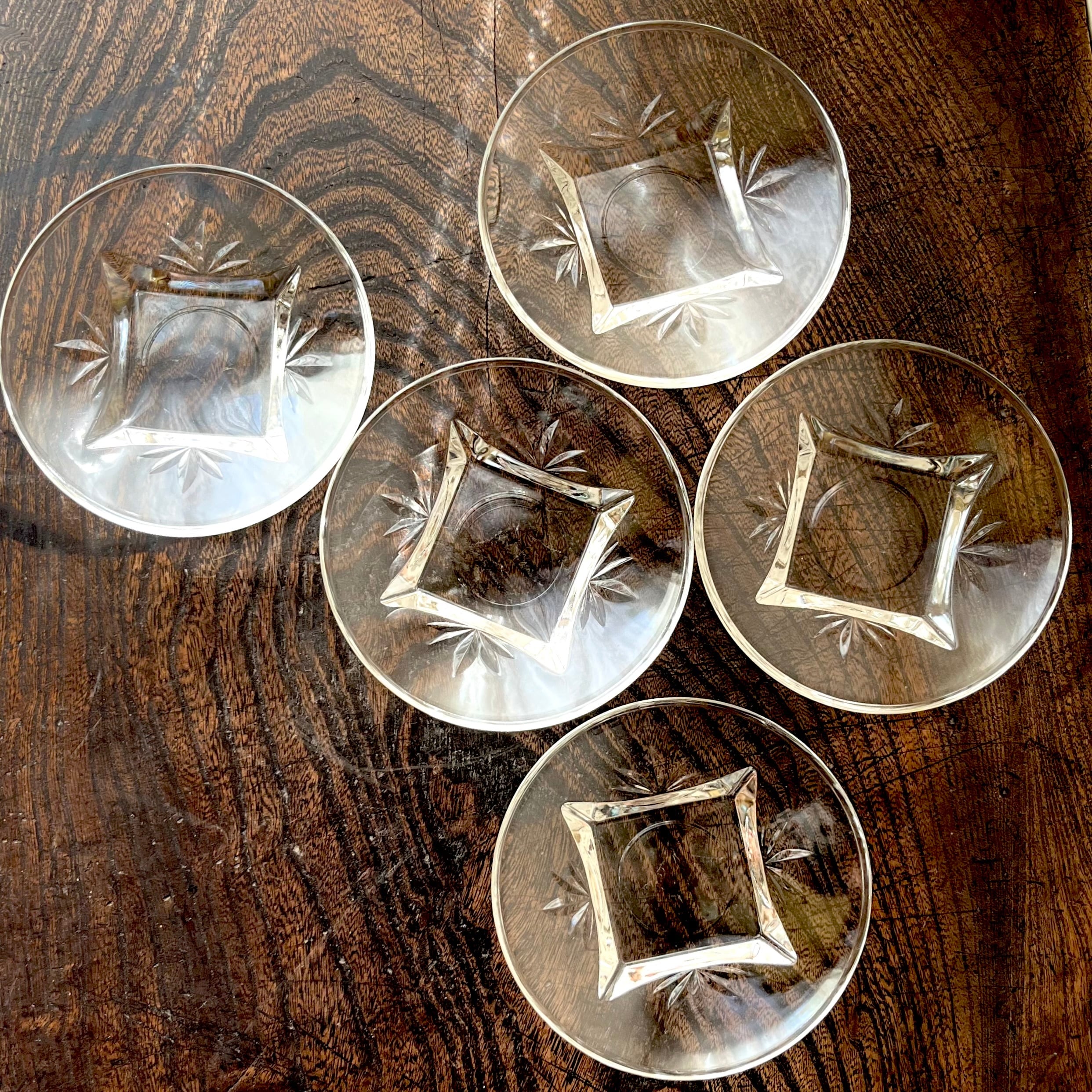 【傷あり】ガラスの小皿5枚組 昭和レトロ◆アデリア ガラスのコースター
