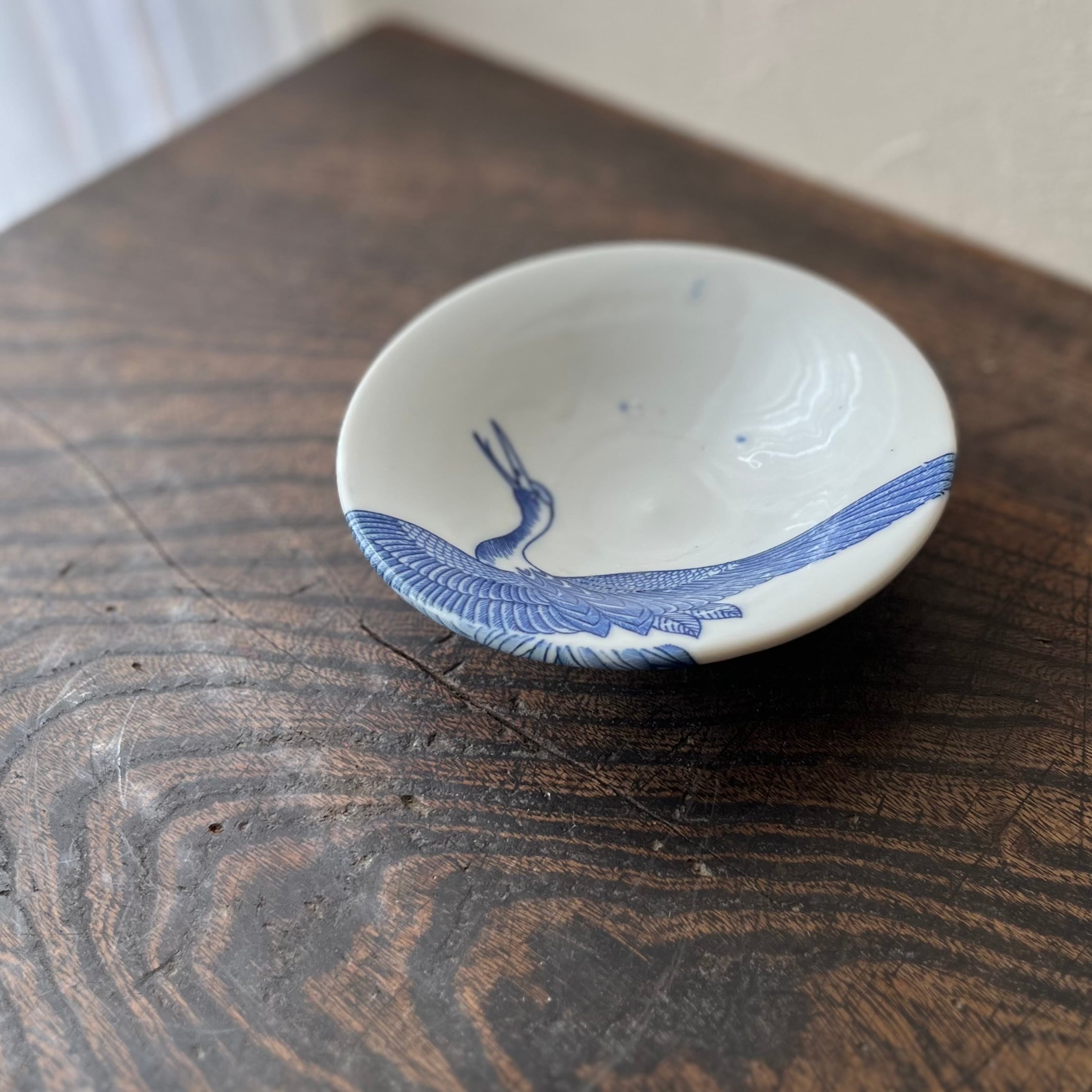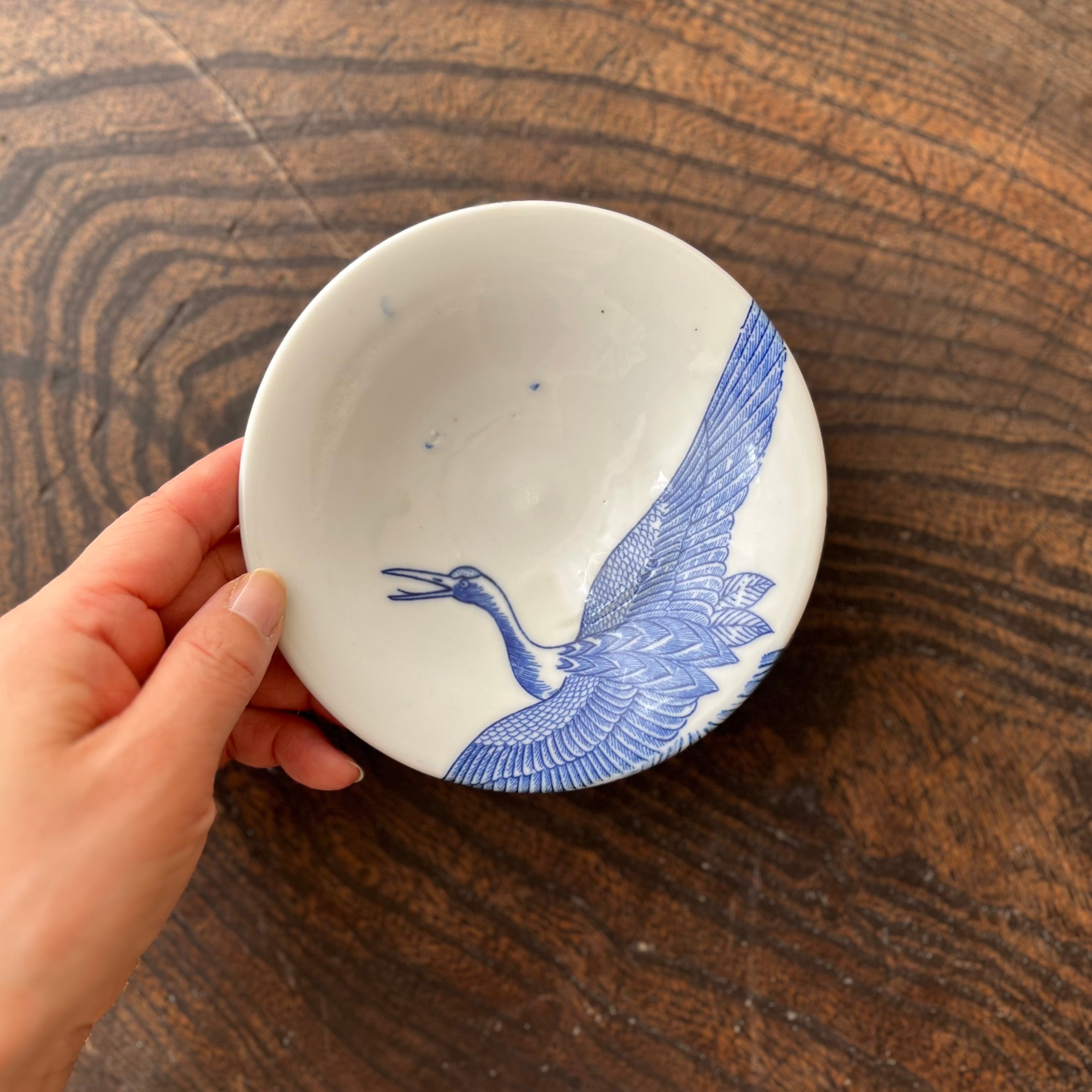 大きく羽を広げた一羽の鶴が印象的な小皿。
