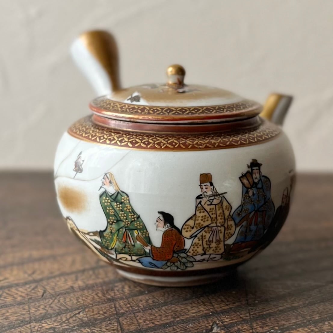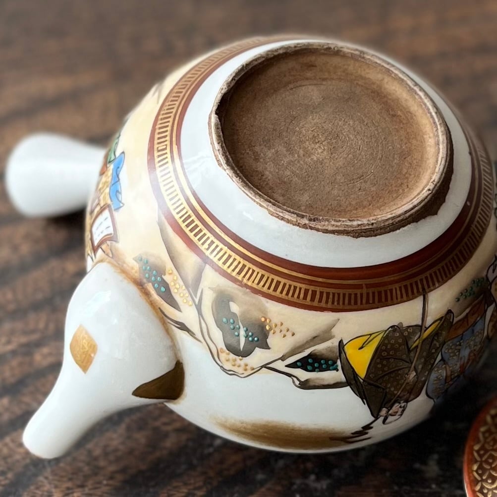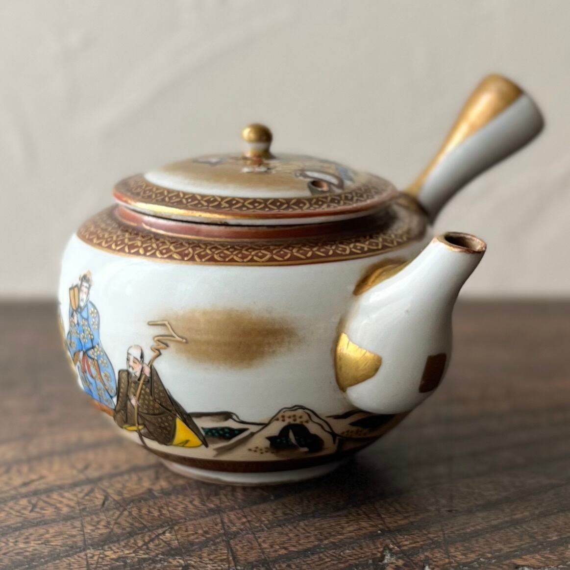 人物図が施された九谷色絵金彩煎茶器。