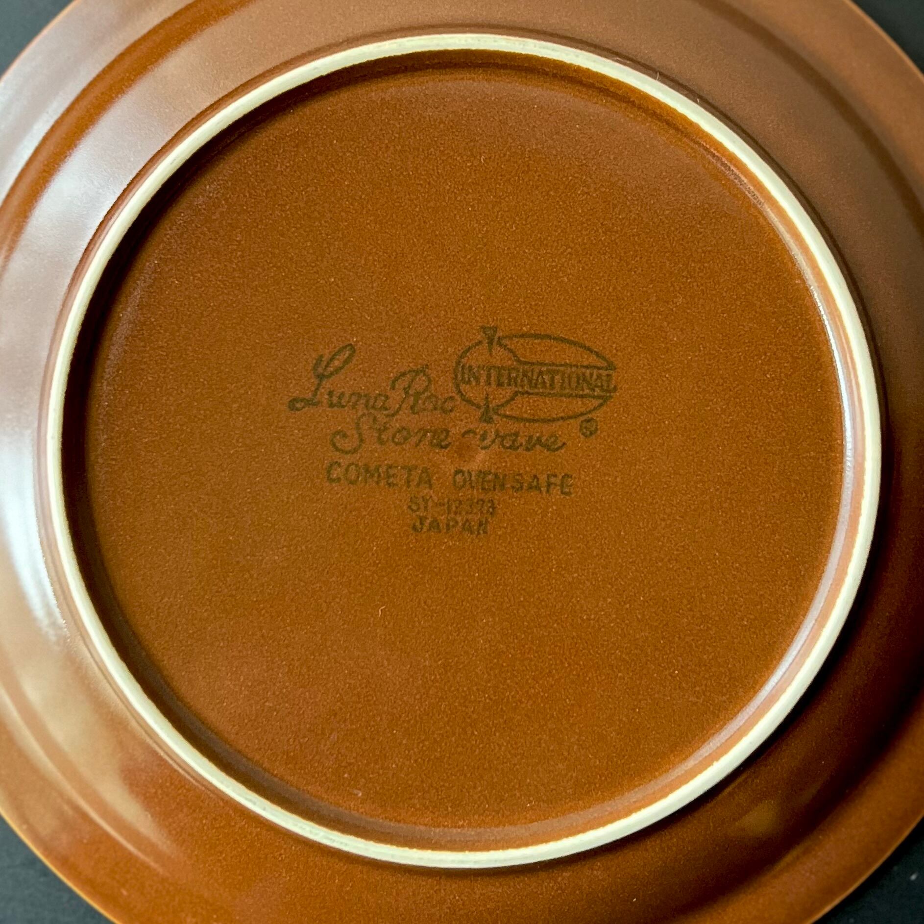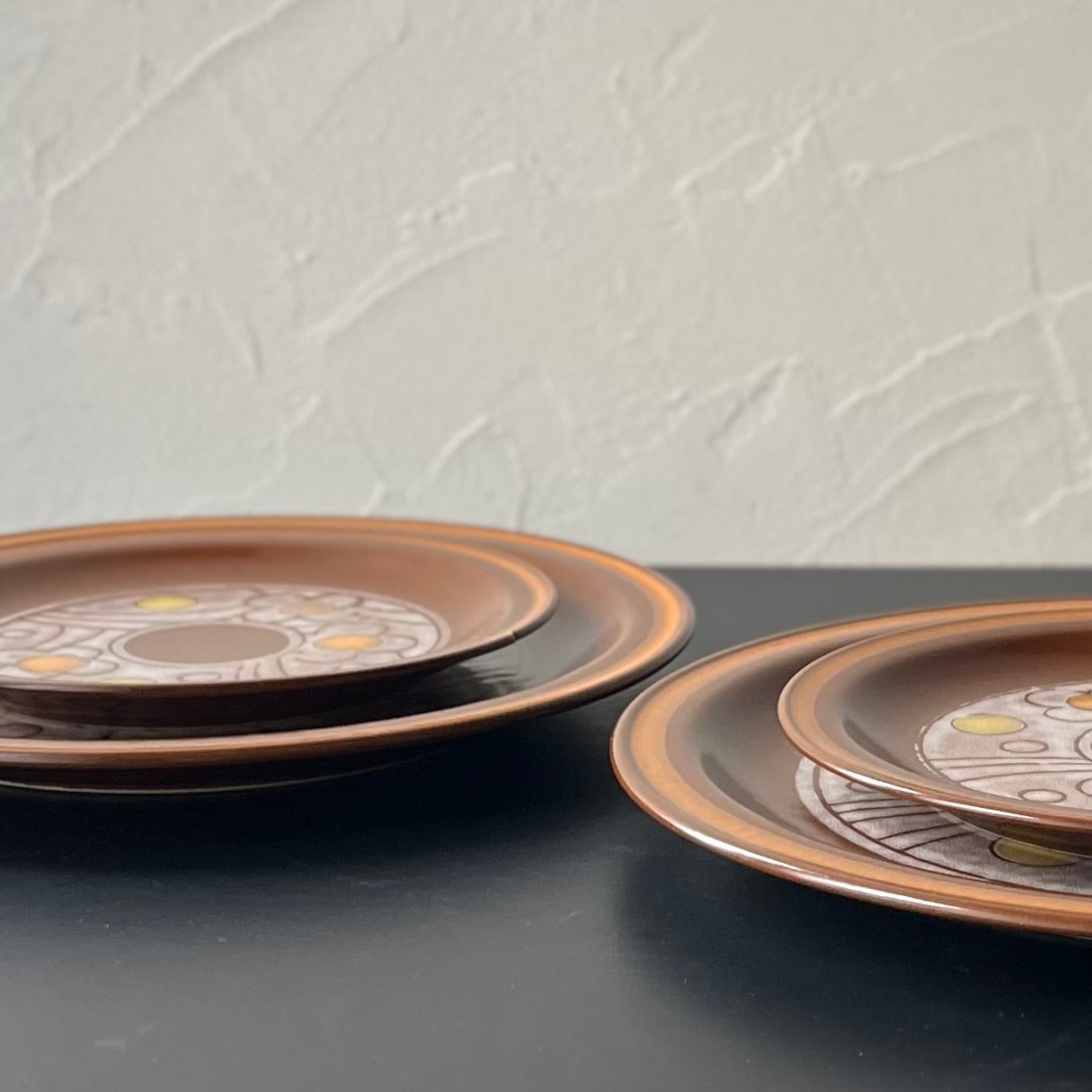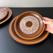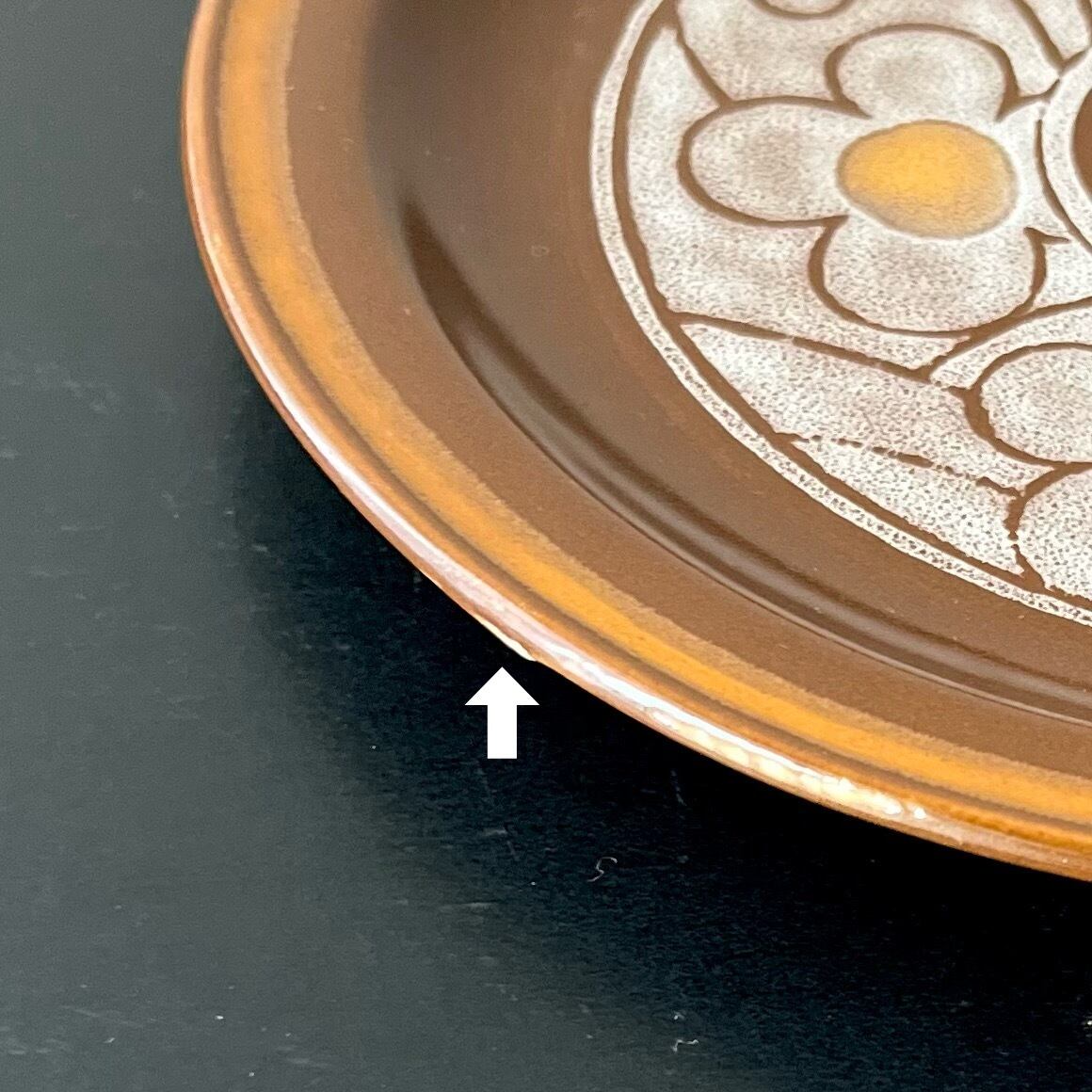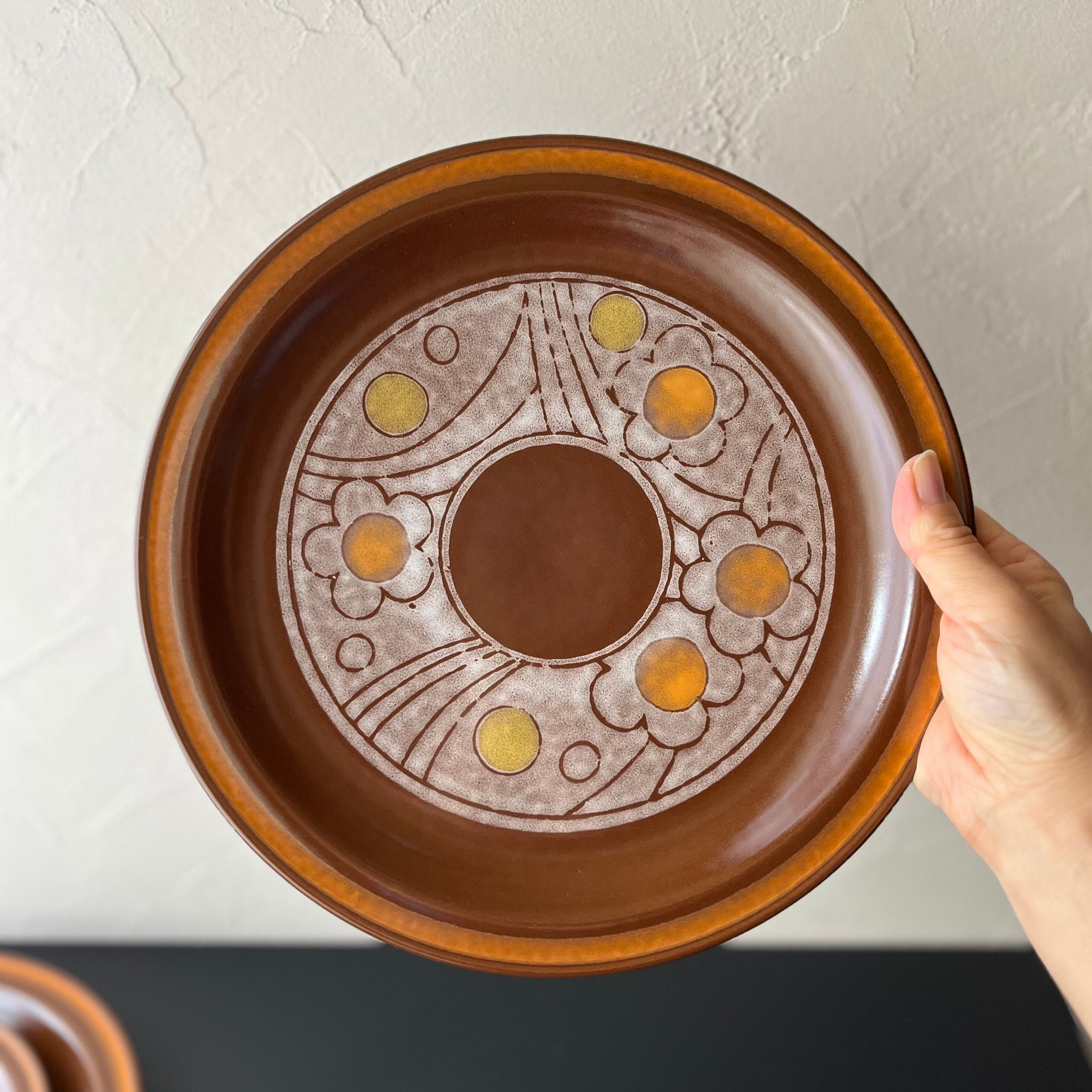 窯キズあり◆花模様のストーンウェア 大小4点セット 温かなブラウン系