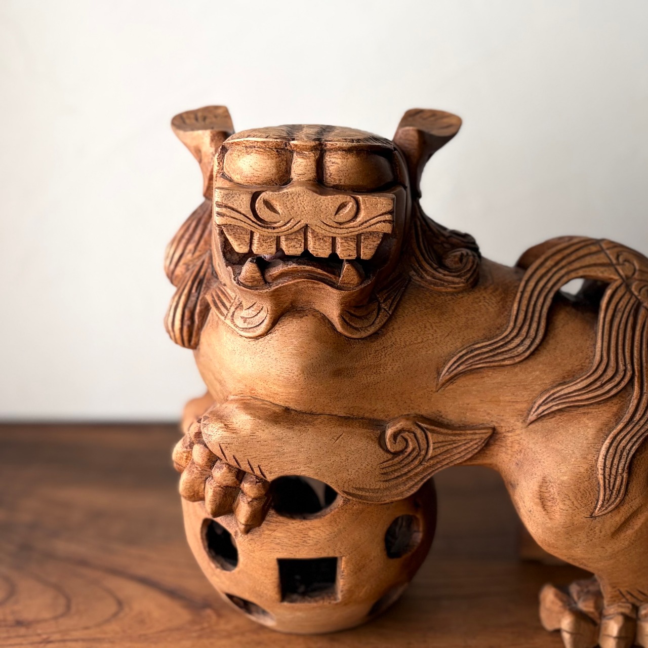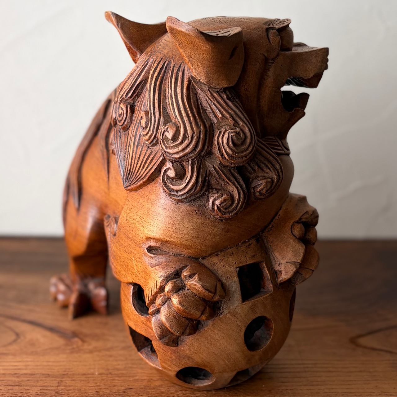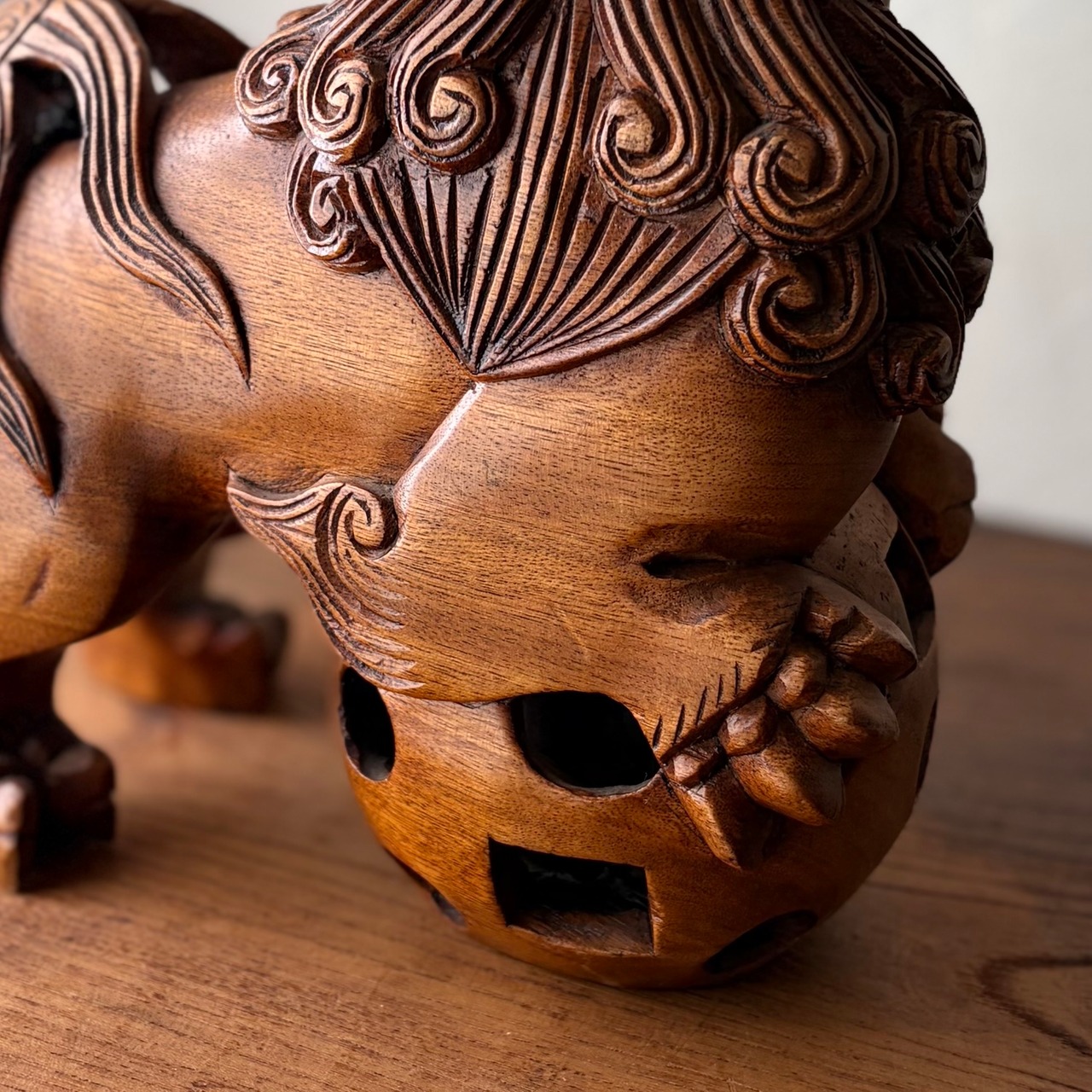 全長約23cmの木彫りの玉獅子。