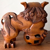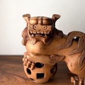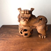 【玉獅子 木彫り獅子 全長23cm】