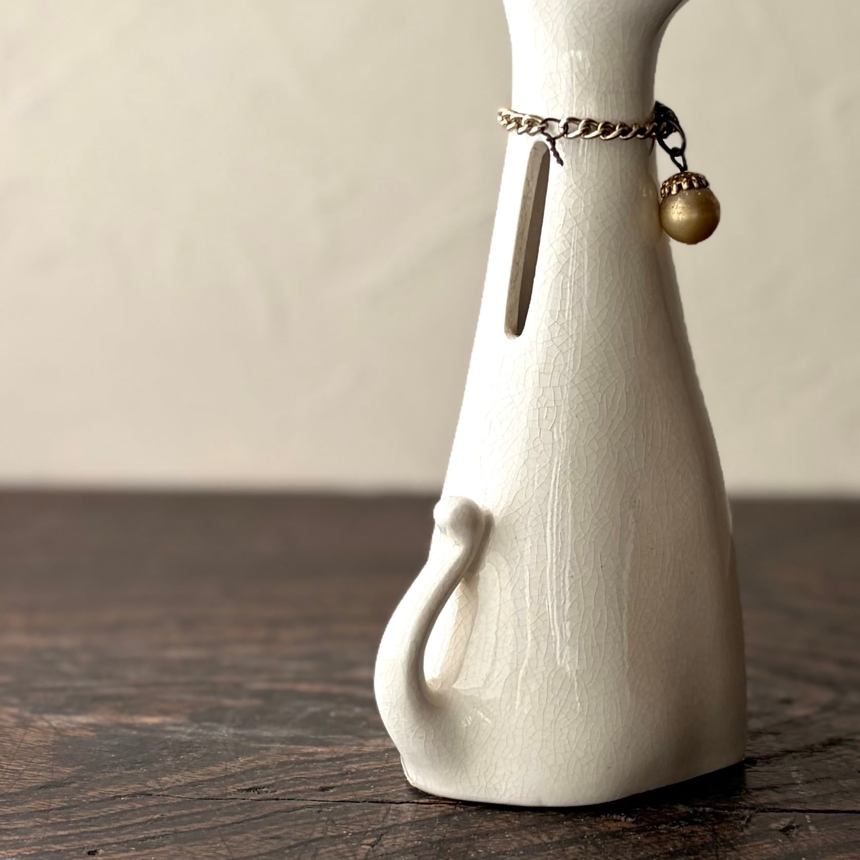 【白ネコの貯金箱 陶磁器製 ノベルティグッズ】