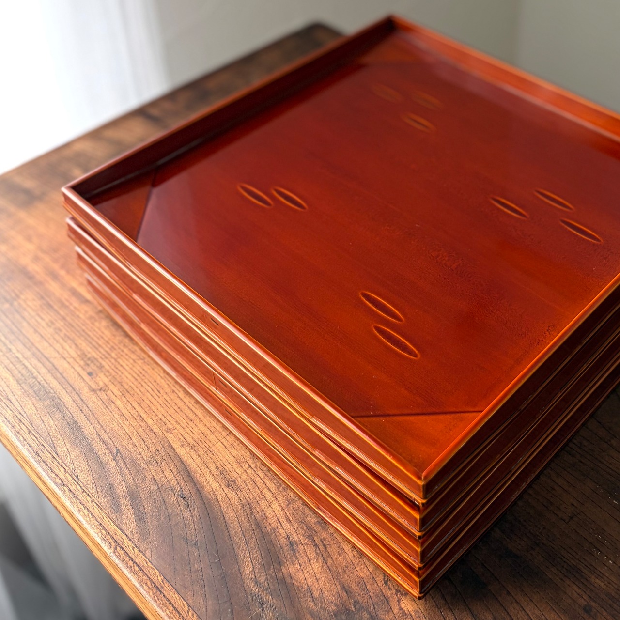 【飛騨春慶 御膳 お盆 トレー 松葉のモチーフ◆未使用品】